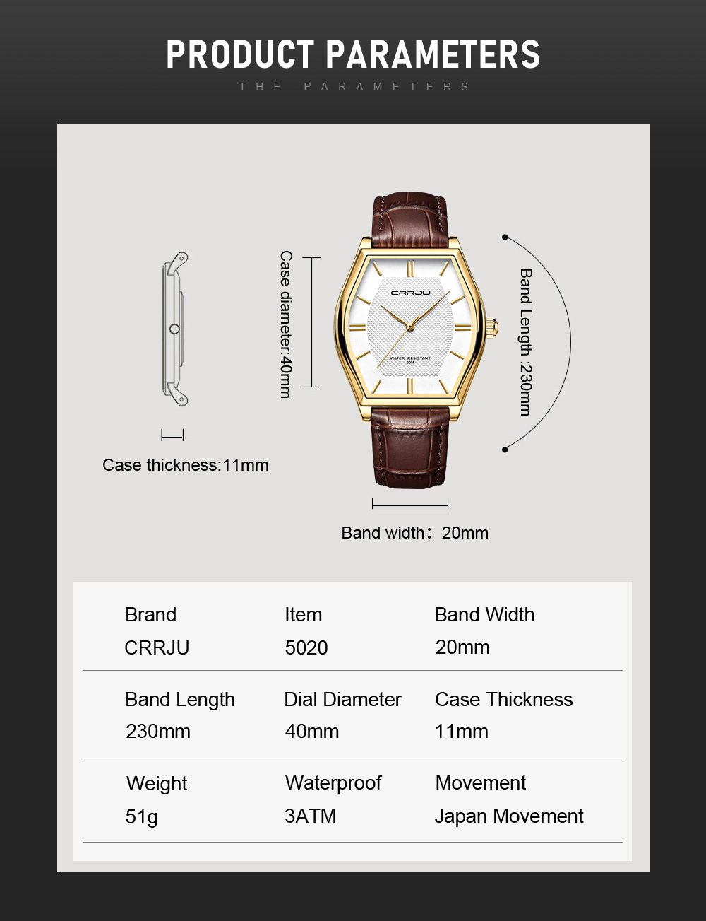 ميزات خاصة | صناعة يابانية دقيقة تضمن الأداء العالي، مع تصميم منحني فاخر وحزام جلد أصلي لراحة وأناقة تدوم في كل اجتماع أو مناسبة رسمية. |