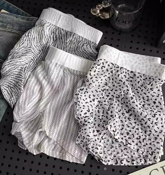 بوكسر رجالي صيفي بطبعة جلد الفهد رقيقة، بوكسر رجالي شبه شفاف مريح وجيد التهوية بتصميم راقي