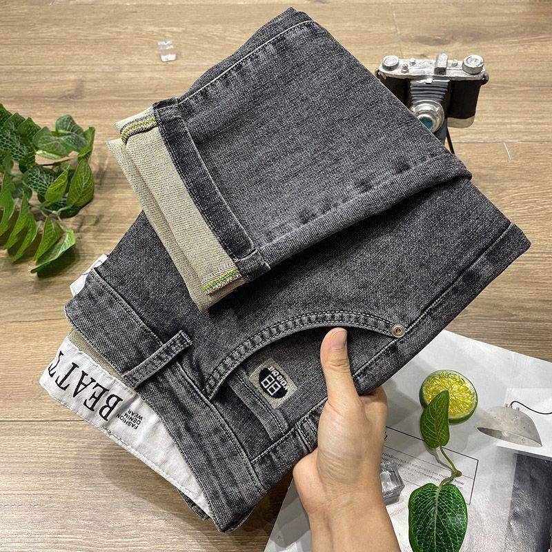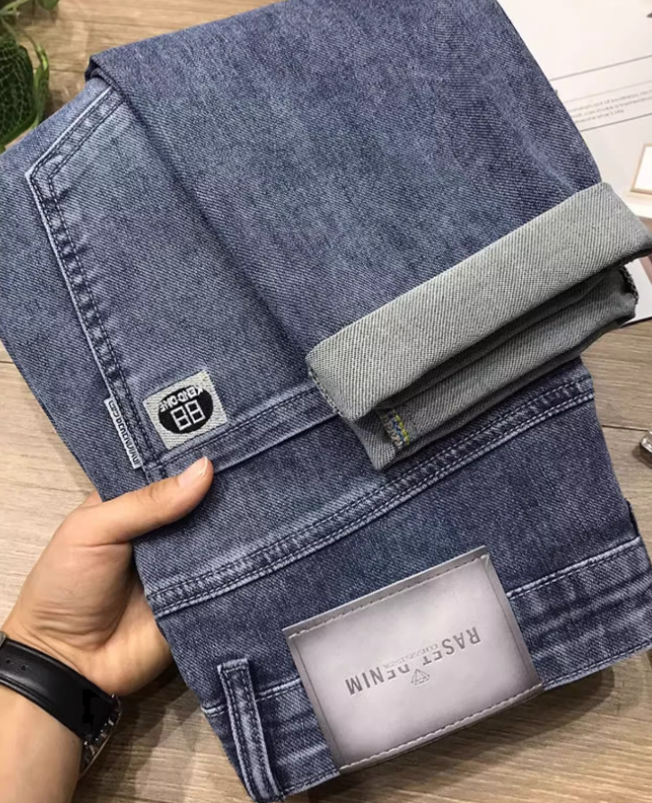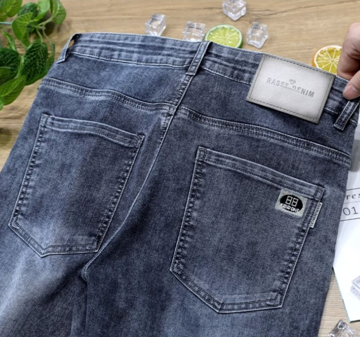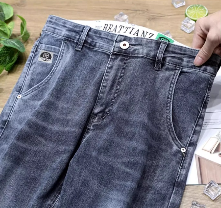بنطلون جينز رجالي صيفي عصري بجودة رفيعة، بنطلون مستقيم نحيف قابل للتنفس جديد للرجال
