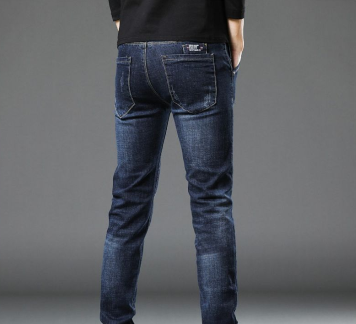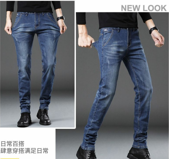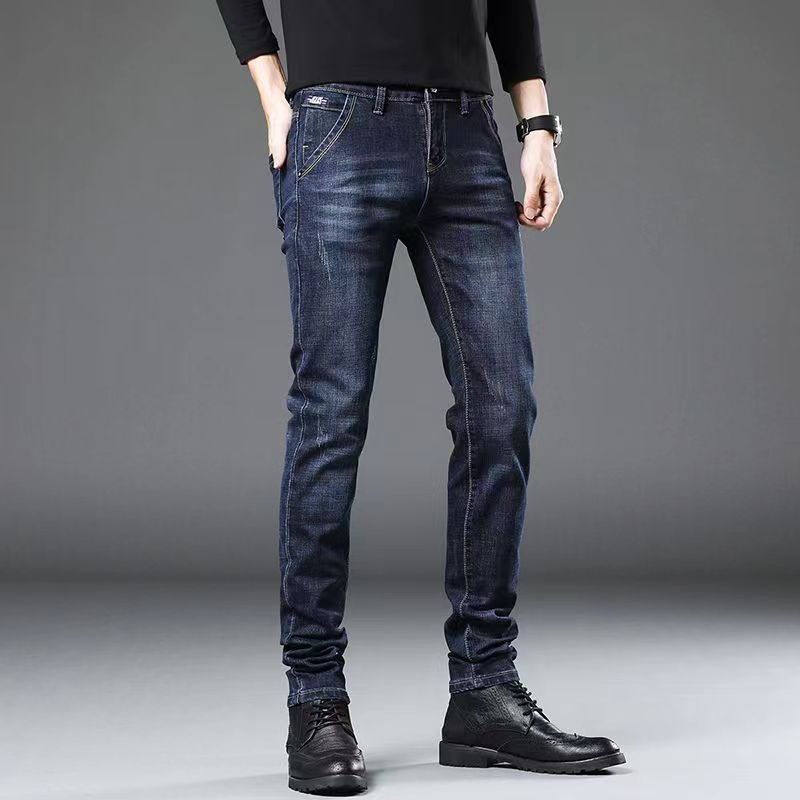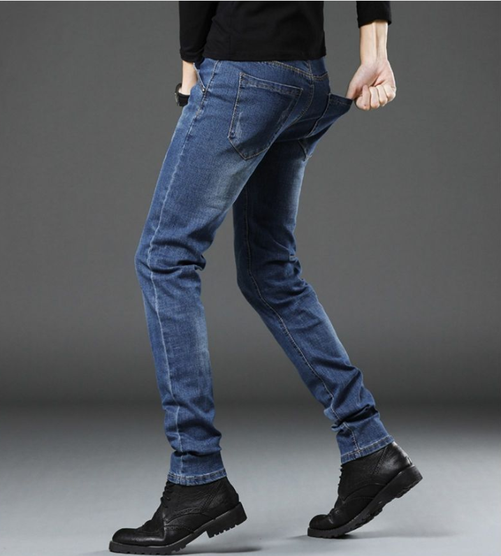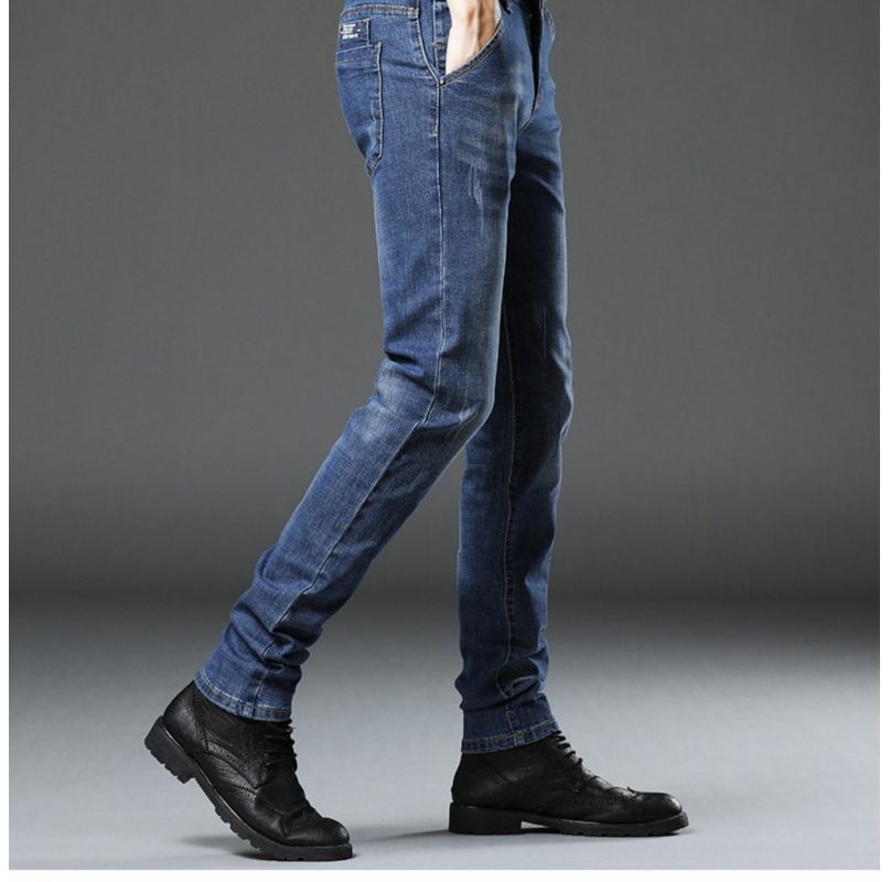 بنطلون جينز رجالي عصري ضيق بقصه نحيفة، بنطلون جينز رجالي جديد مرن غير رسمي طويل