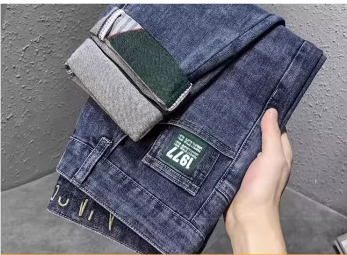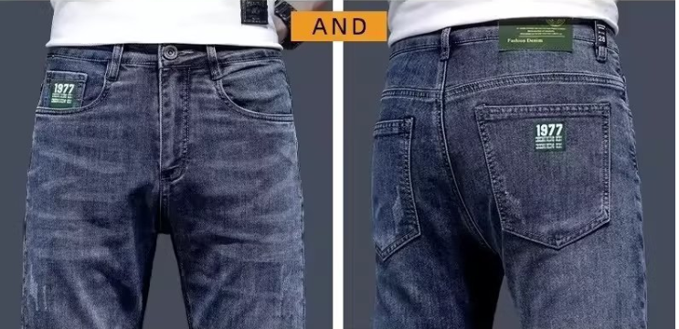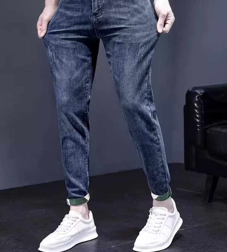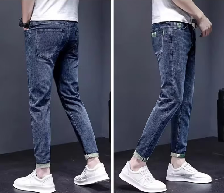 بنطلون جينز رجالي صيفي رفيع بقصّة ضيقة، بنطلون كاجوال مرن عصري بلونين للرجال