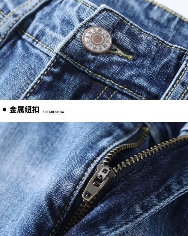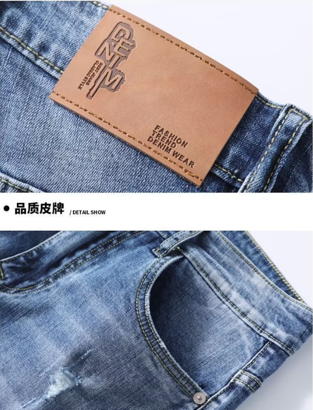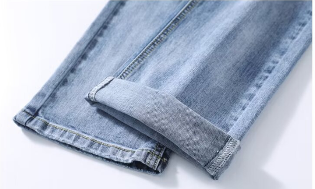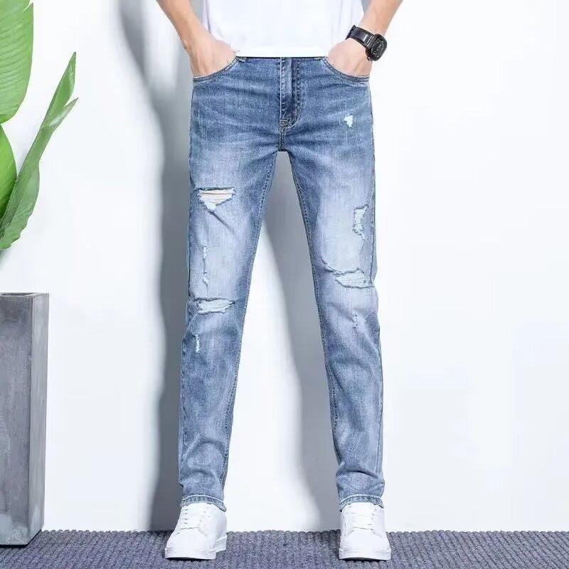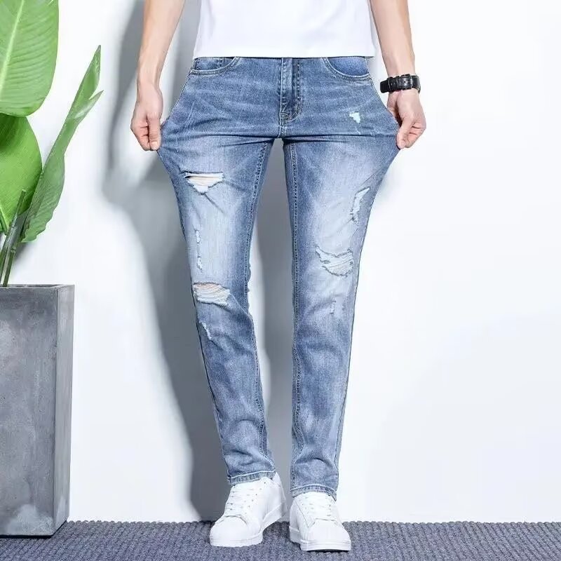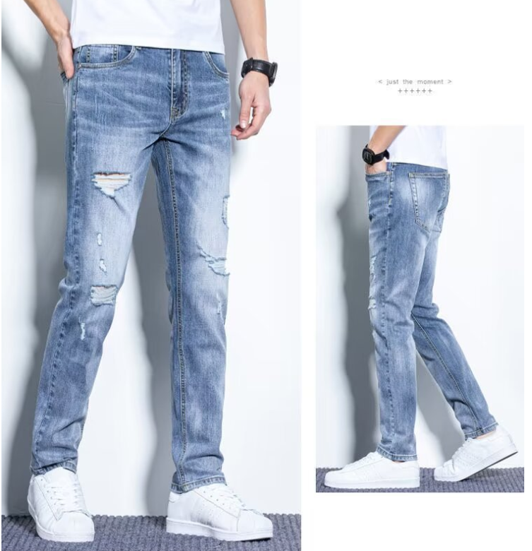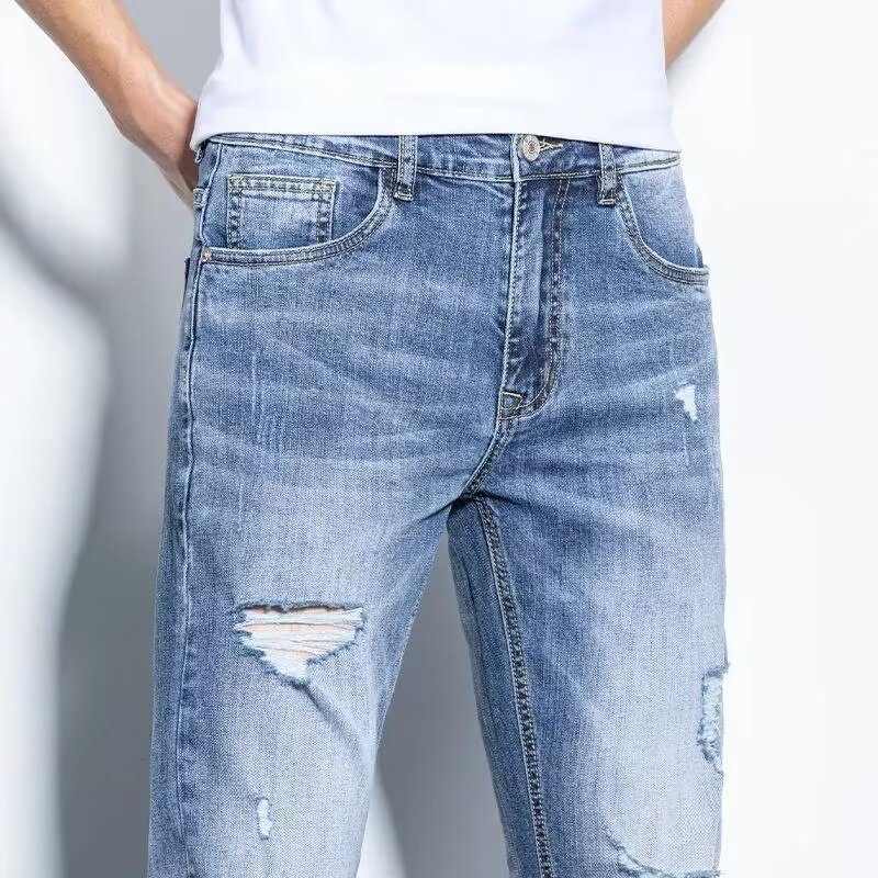 جينز رجالي ممزق بلون ازرق فاتح جميل، بنطلون صيفي عصري واسع للرجال