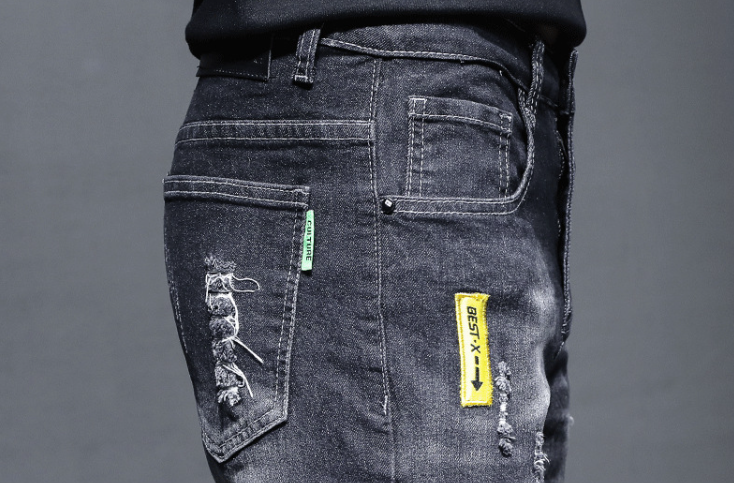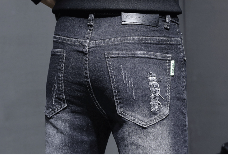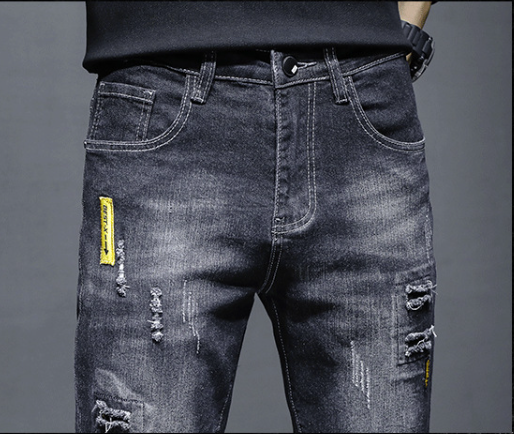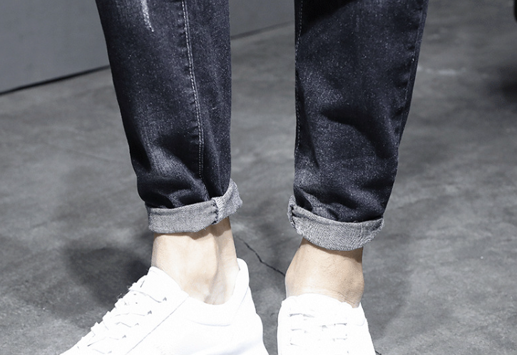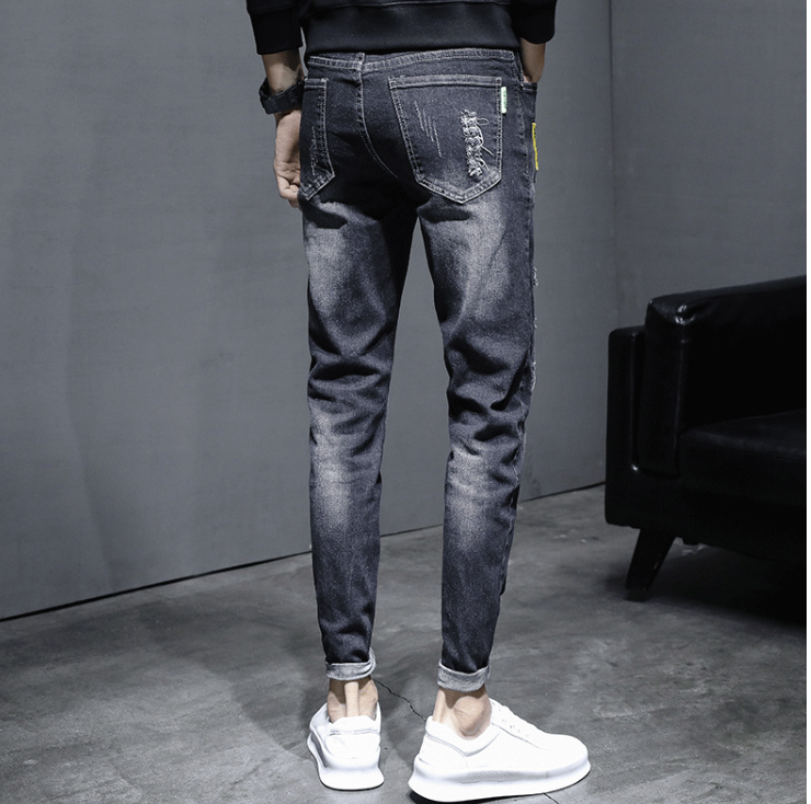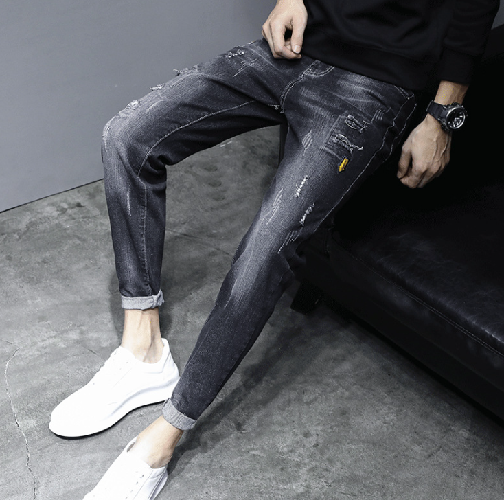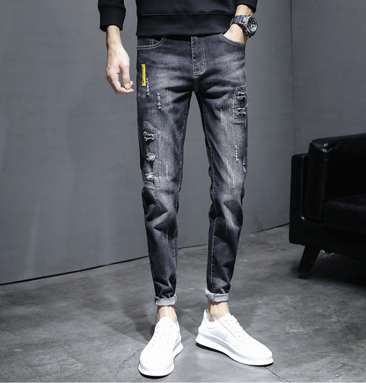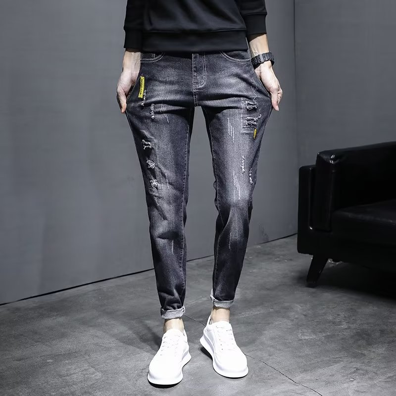 بنطلون جينز رجالي بتصميم كوري عصري مرن، بنطلون بقصة ضيقة ممزق رفيع غير رسمي