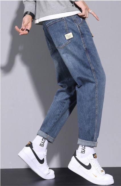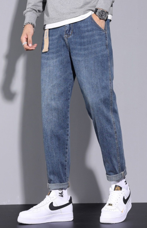 بنطلون جينز رجالي فضفاض مستقيم، بنطلون أنيق غير رسمي سادة للرجال