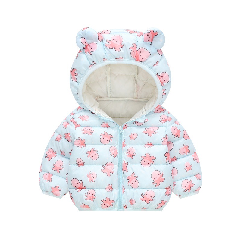جاكيت قطني منفوخ لحديثي الولادة برسومات كرتونية ، سترات حديثي الولادة بقبعة خلفية دافئة