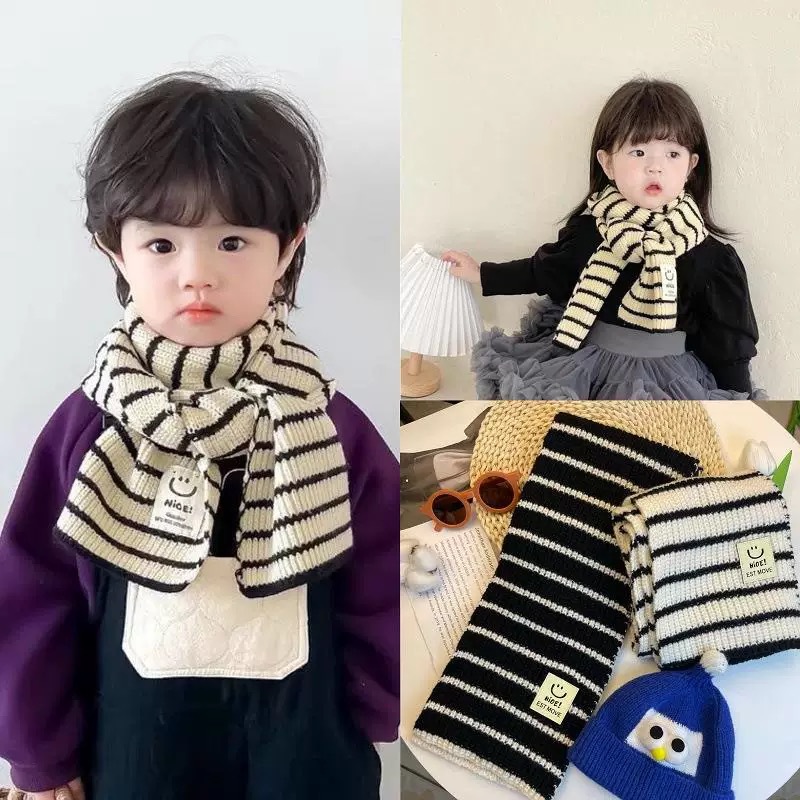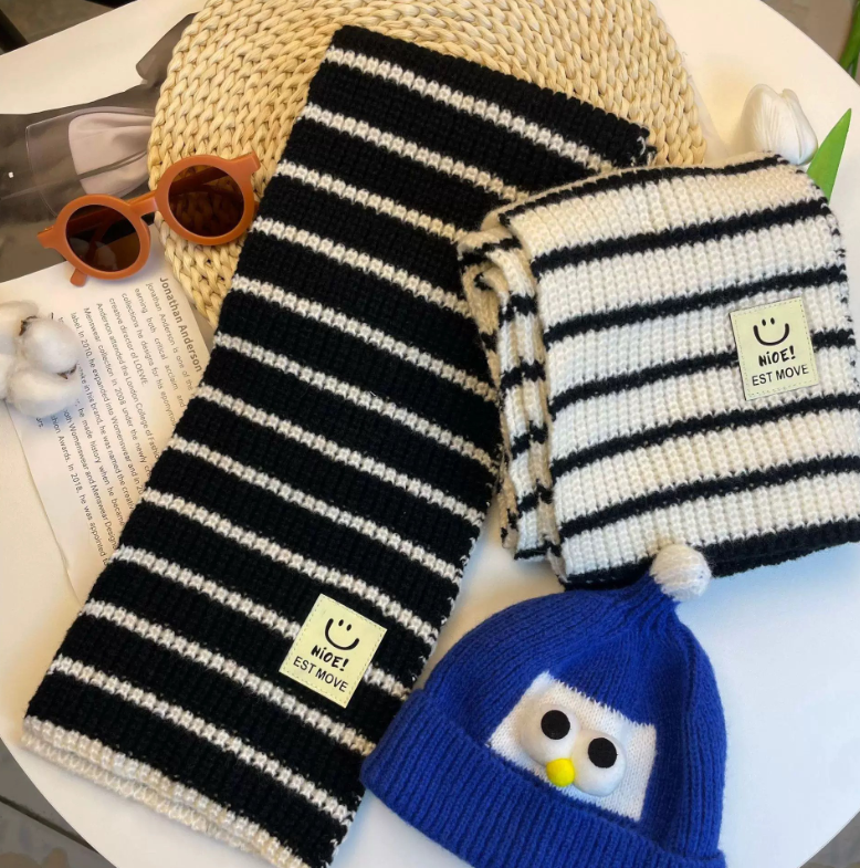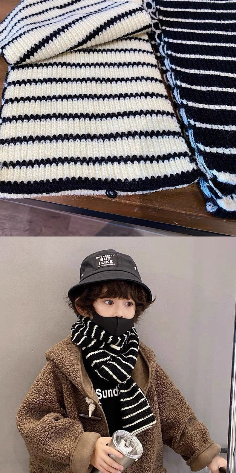 وشاح صغير محبوك مخطط جديد للأطفال لطلاب المدارس، وشاح رقبة من الصوف البسيط دافئ وأنيق