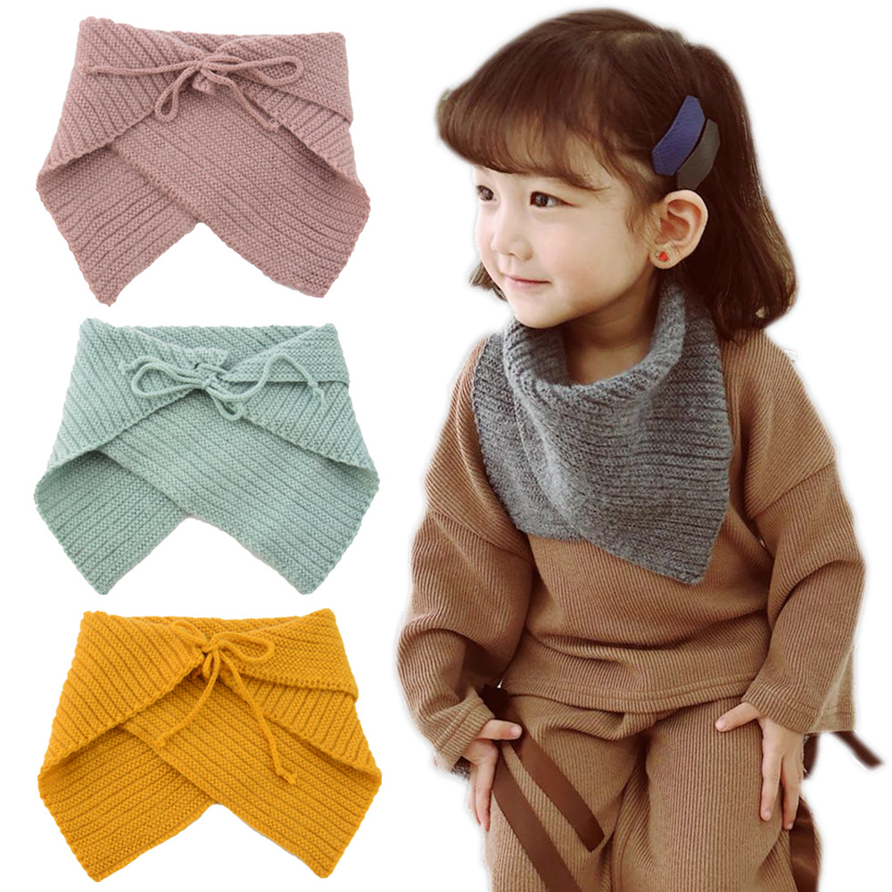 وشاح صوف بناتي برباط امامي لفصل الشتاء، وشاح مثلث دافئ للرقبة للفتيات