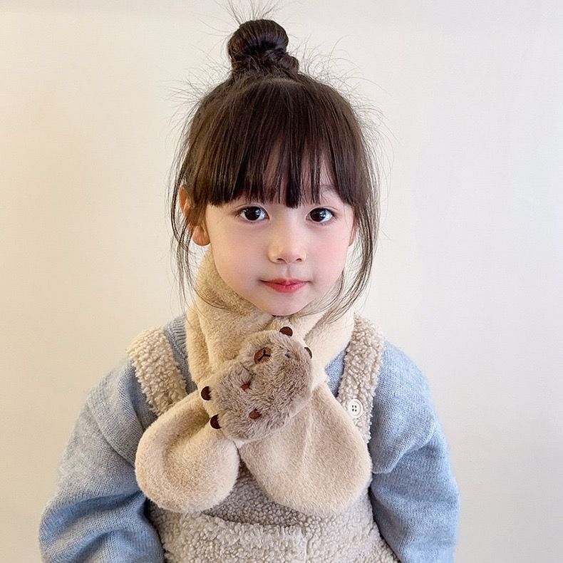 وشاح فروي جديد للأطفال لطيف ناعم الخامة، وشاح سميك دافئ للرقبة بدمية دب