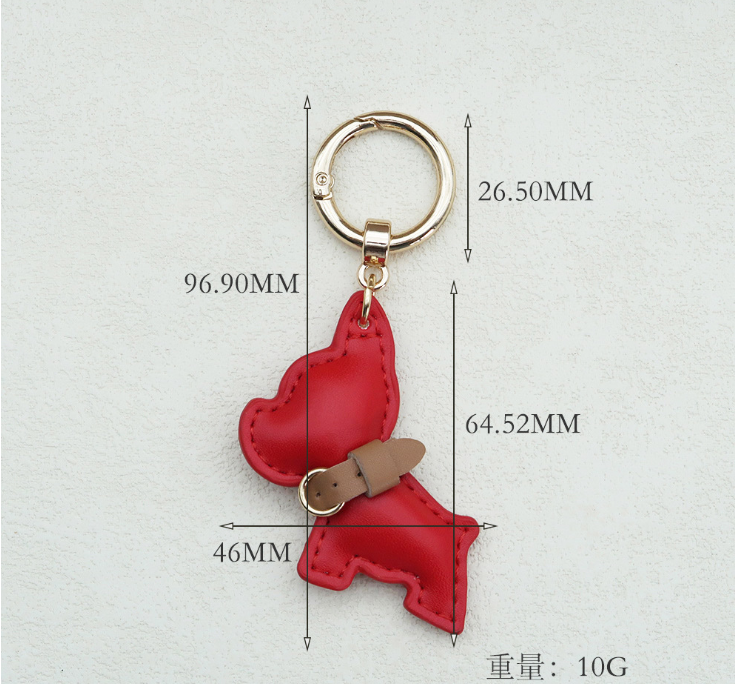 سلسلة مفاتيح صغيرة من الجلد على شكل جرو فرنسي ، سلسلة مفاتيح للسيارة بالوان متنوعة