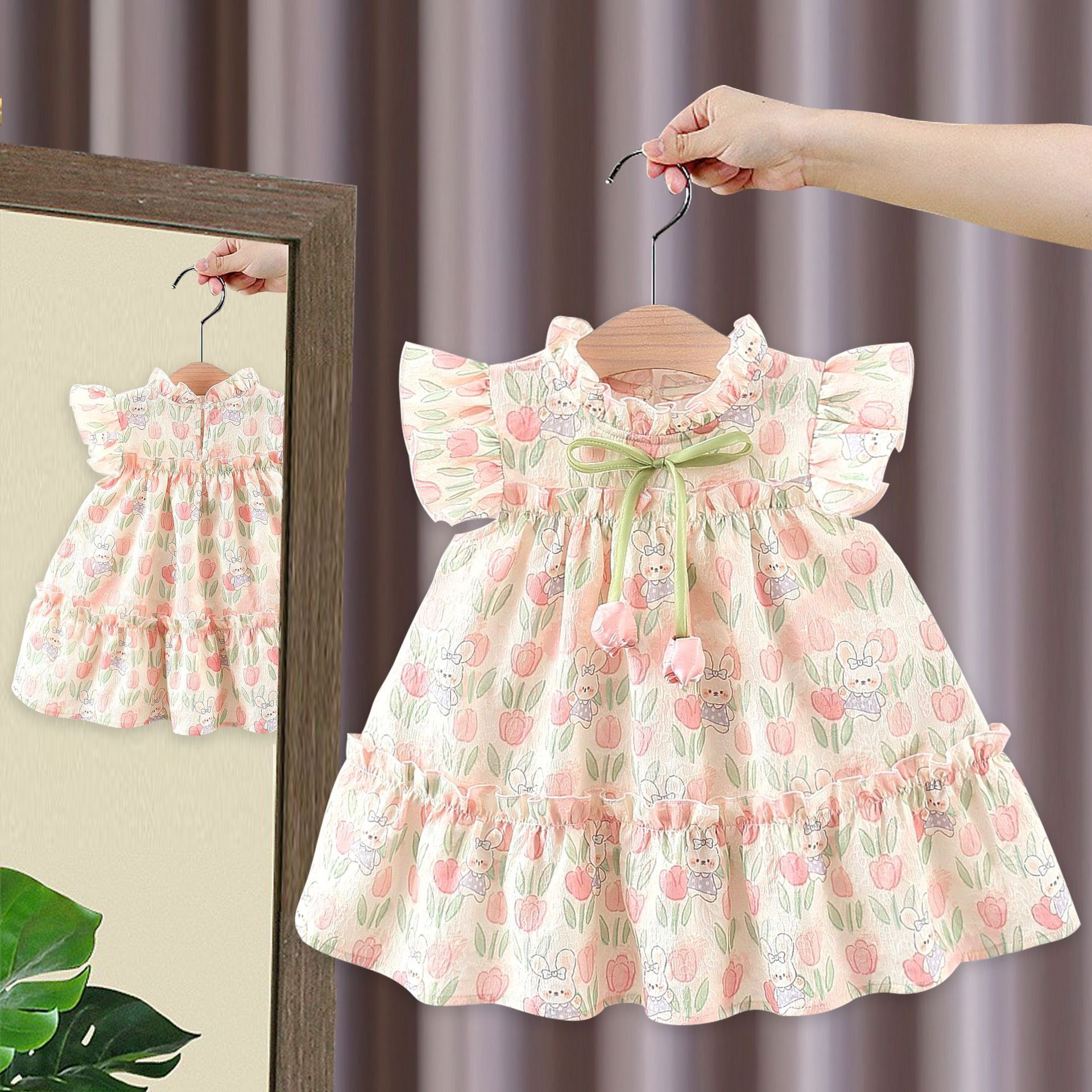 فستان صيفي للبنات توليب بتصميم ملئ بالورود، فستان انيق لحفلات العائلة