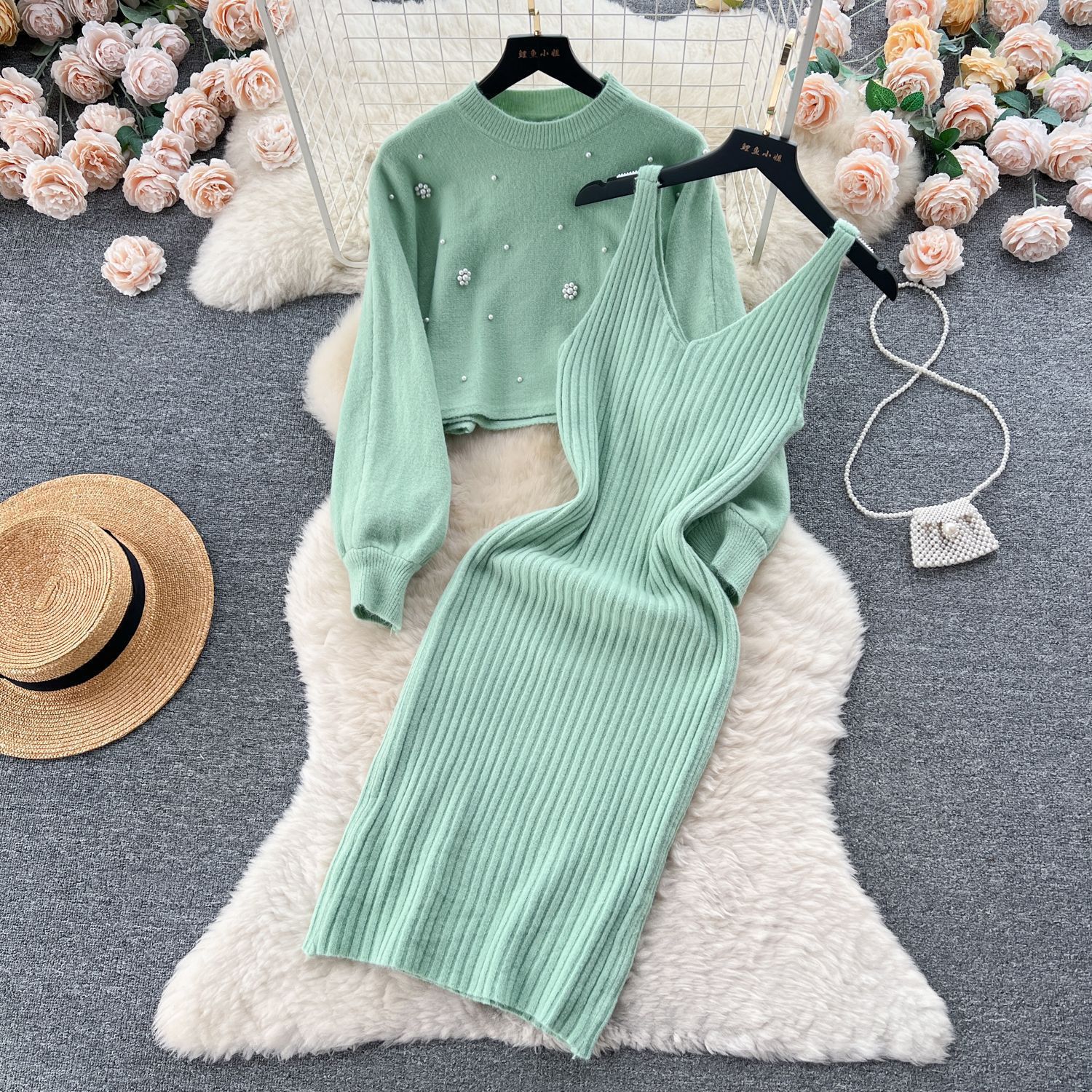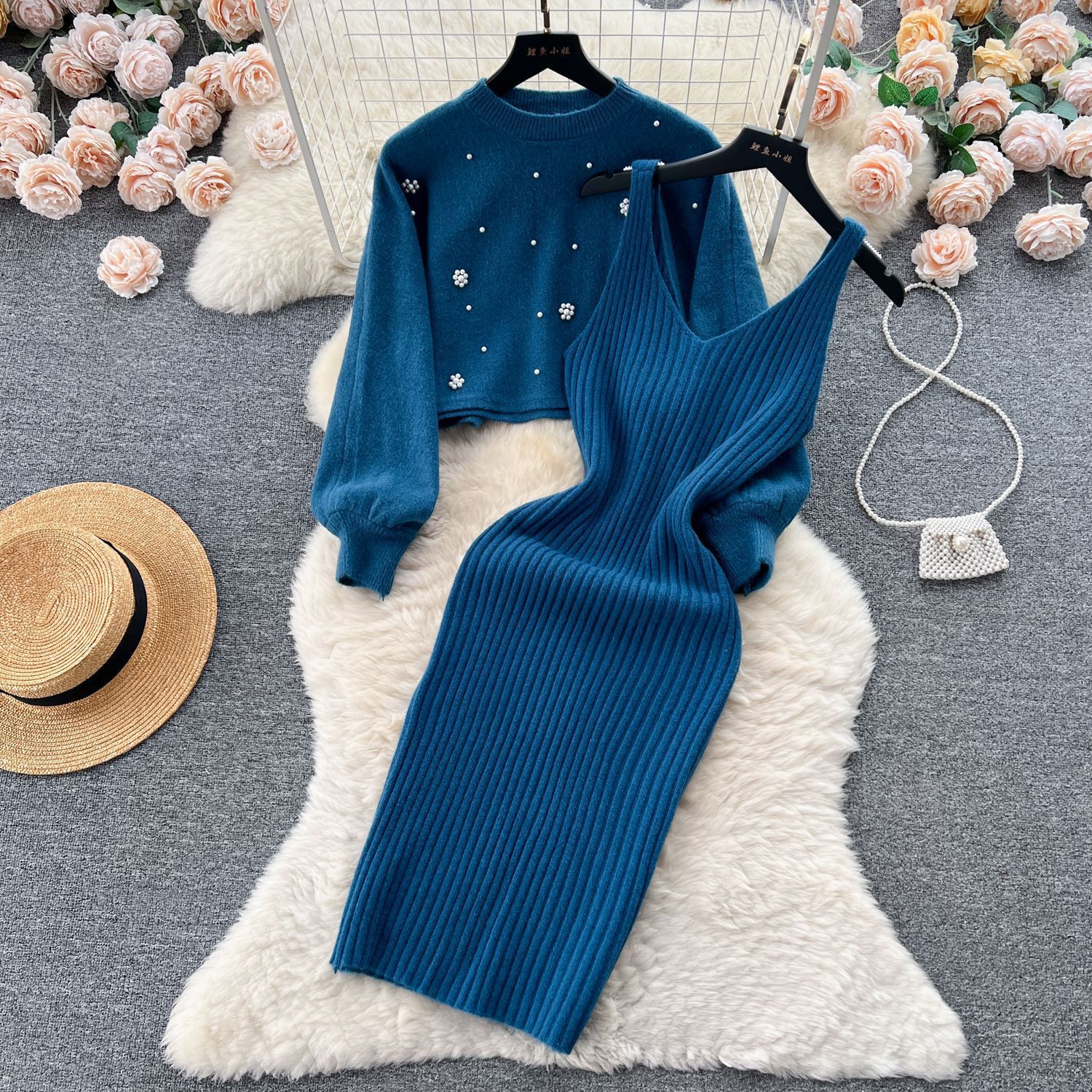فستان شتوي نسائي من قطعتين مطرز دافئ
