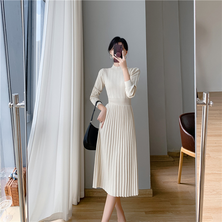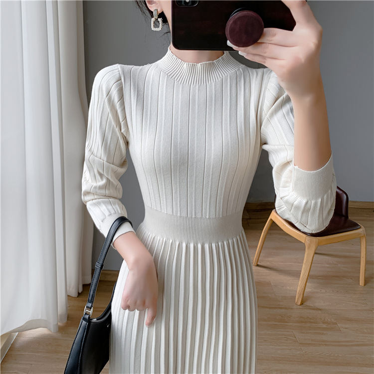 فستان سميك نسائي متوسط الطول بياقة عالية
