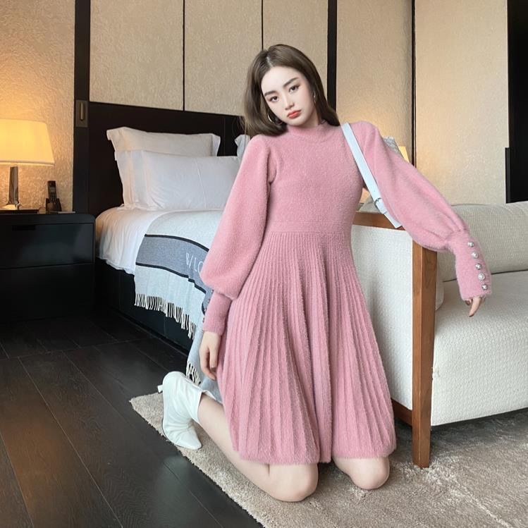 فستان صوف عصري جديد للنساء محبوك قصير