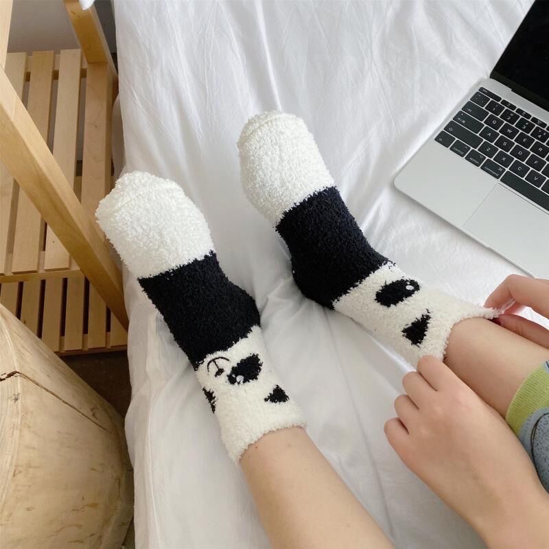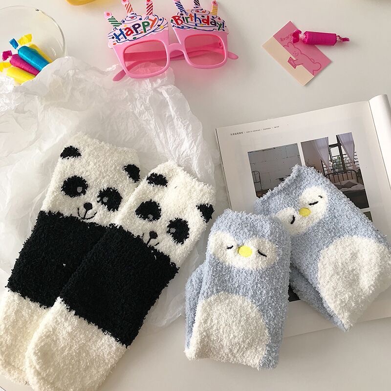 جوارب نسائية مخملية نمط كرتوني متعدد الالوان 3 ازواج لون عشوائي