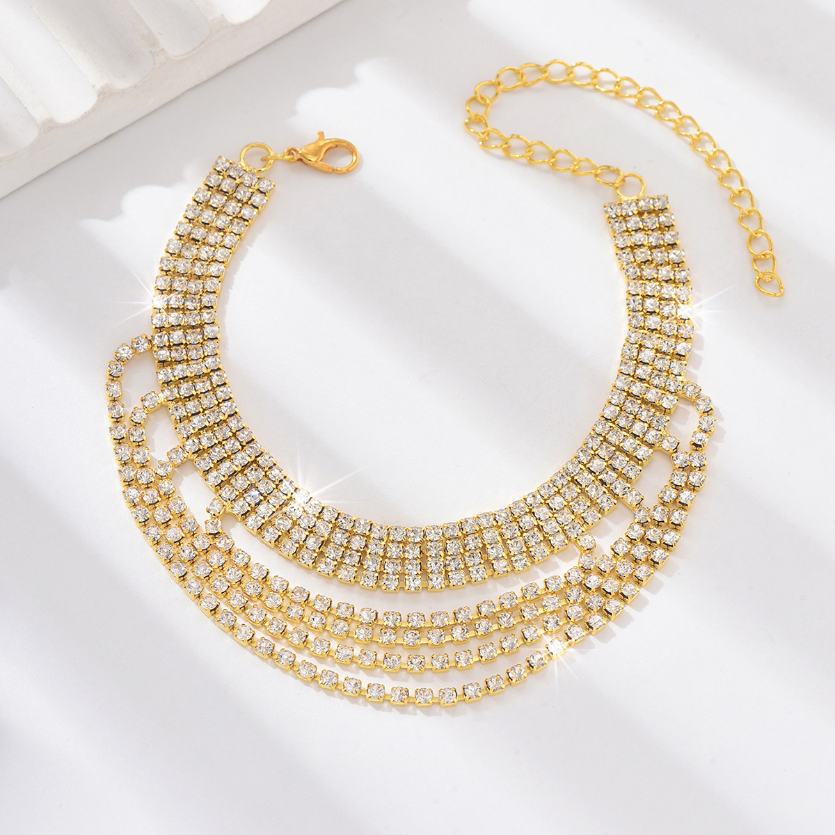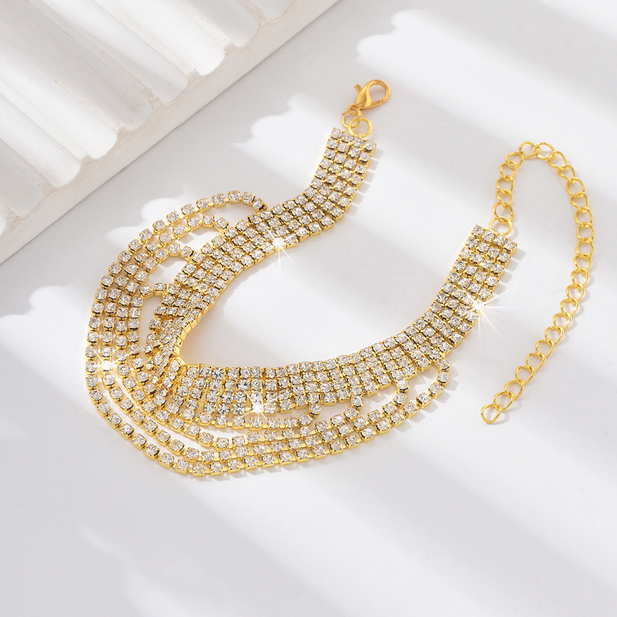 خلخال قدم متعدد الطبقات مرصع باحجار الراين للنساء