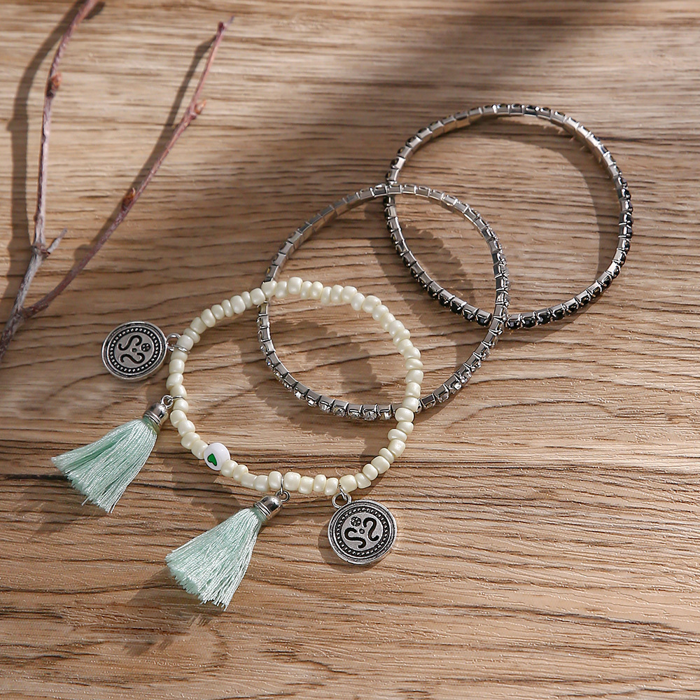 إكسسوارات قدم جديدة بتصميم عتيق سوار كاحل مرن مكون من 3 قطع