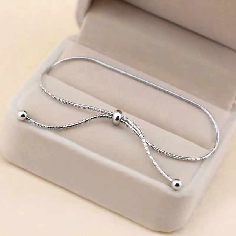 خلخال نسائي من الفولاذ المقاوم للصدأ قابل للتعديل باللون الفضي
