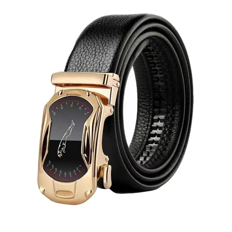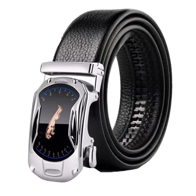 حزام جلدي نمط النمر بابزيم اوتوماتيكي بمشبك حديدي للرجال