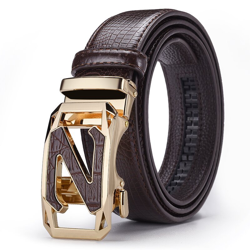 حزام رجالي من الجلد بإبزيم أوتوماتيكي نمط حروف