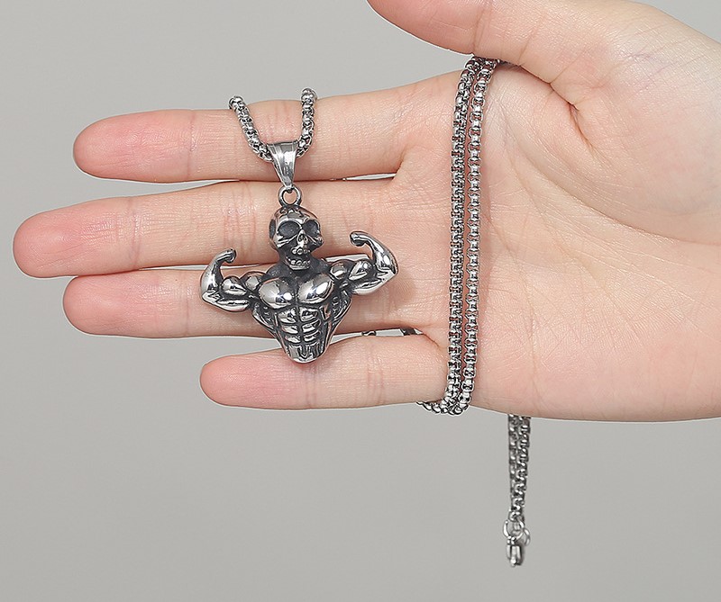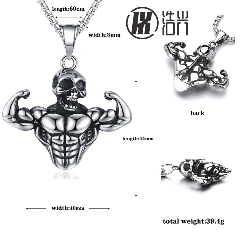 قلادة للرجال مصنوعة من الفولاذ التيتانيوم على شكل جمجمة قلادة طويلة للرجال