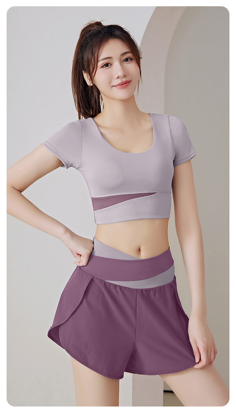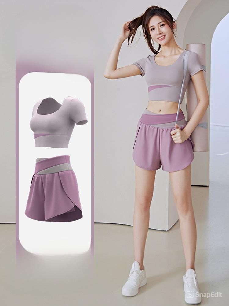 طقم لياقة بدنية من قطعتين ضيقة للنساء ملابس رياضة قصيرة
