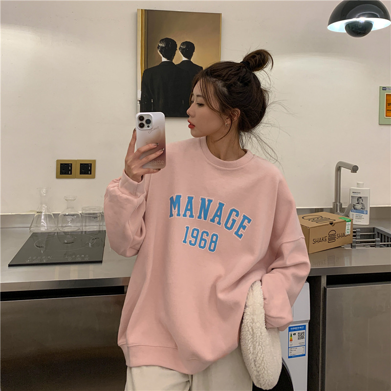 سترة نسائية فضفاضة خريفية باحرف مطبوعه واكمام طويلة