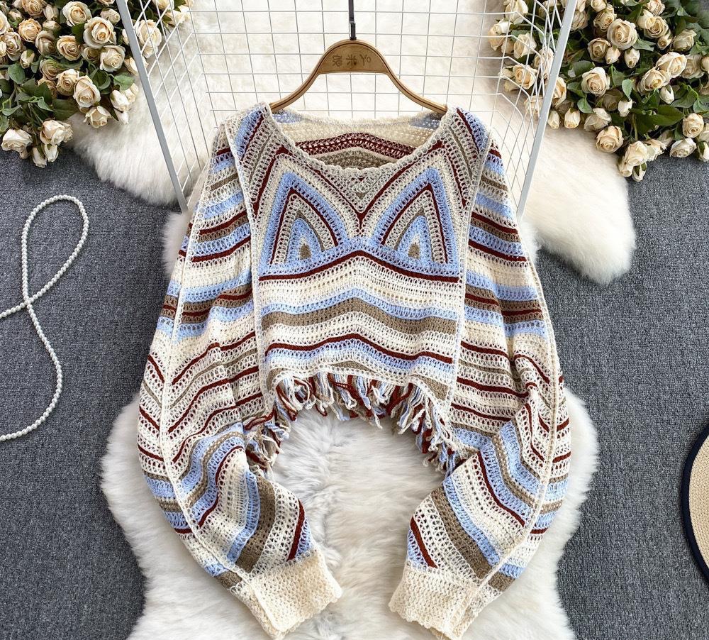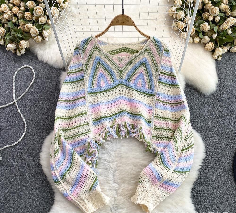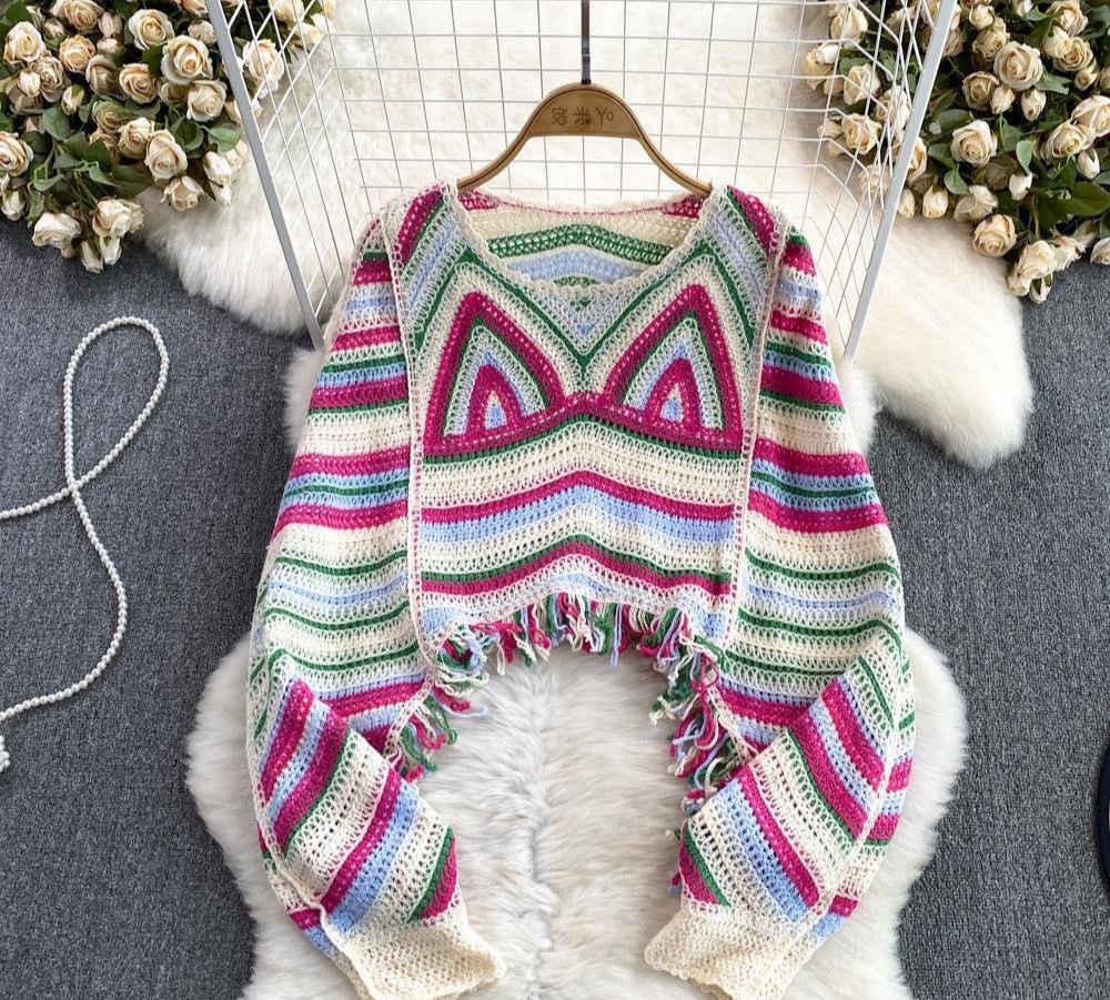 بلوزة نسائية فضفاضة باكمام طويلة من الكروشية