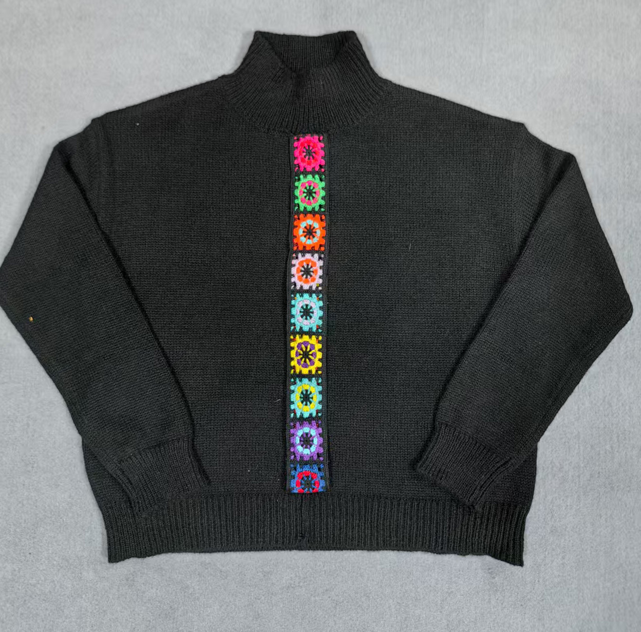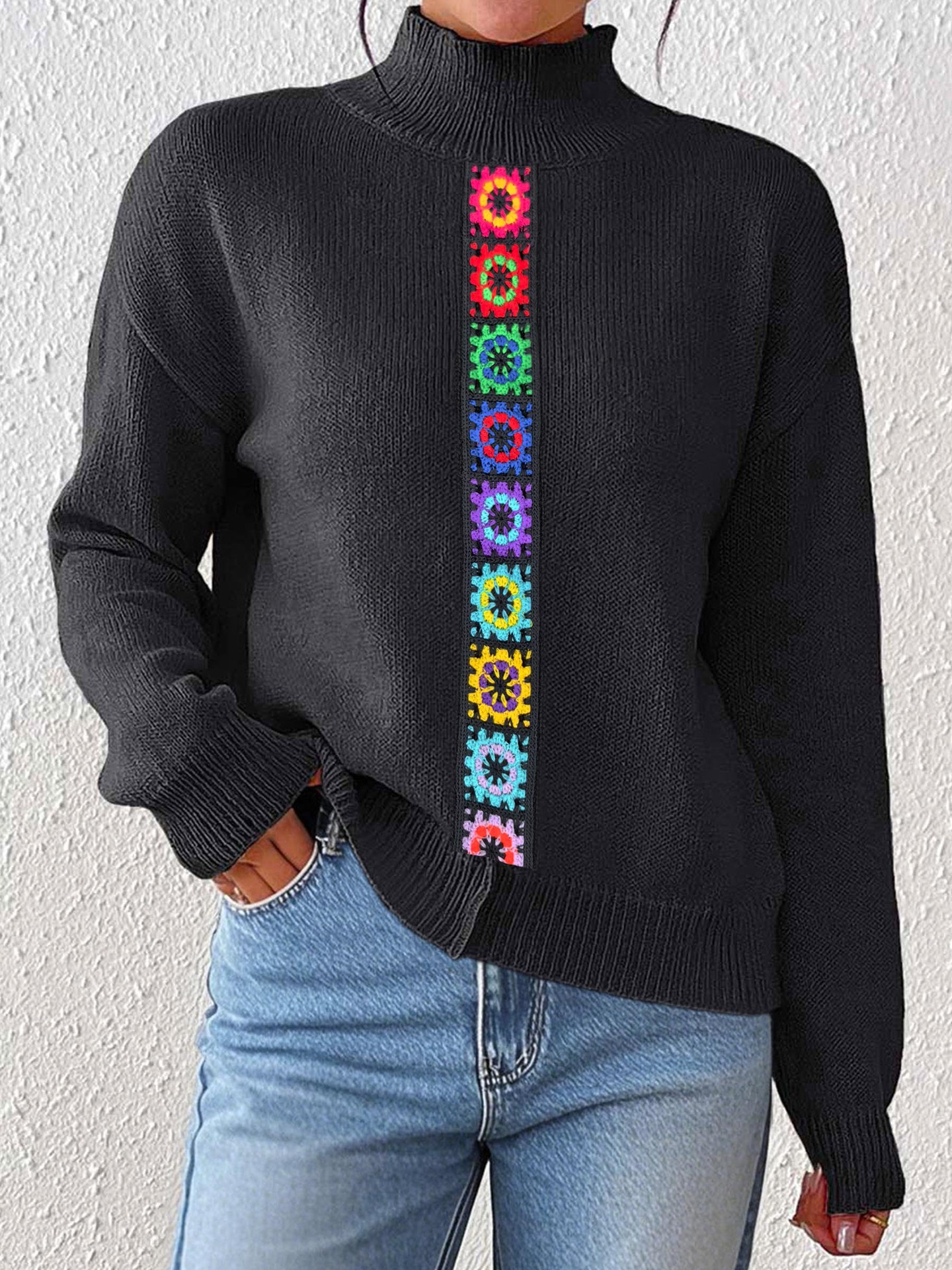 بلوزة ثقيلة نسائية باكمام طويلة وياقة عالية دافئة منقوشة بالوان عشوائية
