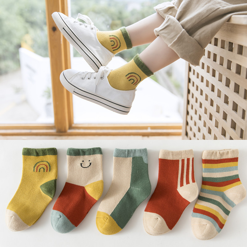 جوارب اطفال متعددة الالوان بانماط مختلفة غير قابلة للانزلاق5 ازواج