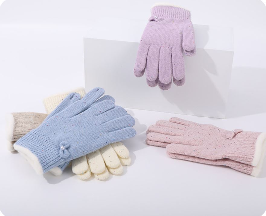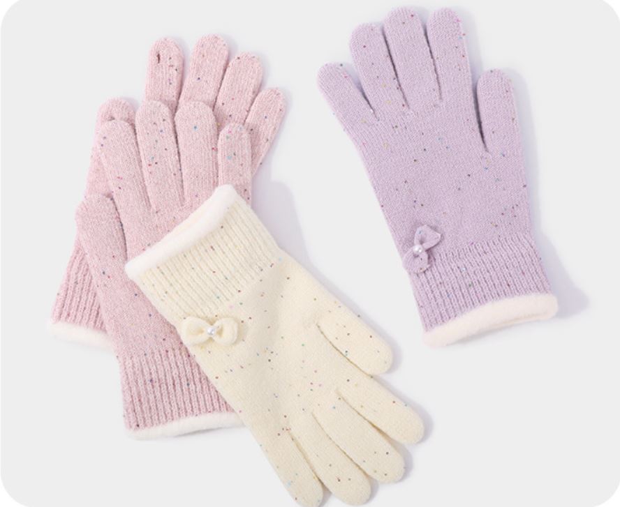 قفازات شتوية نسائية ملونة سميكة بعقدة فراشة