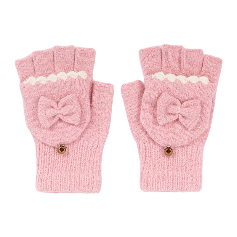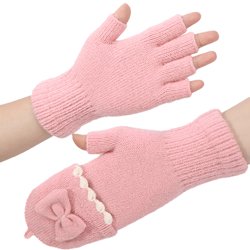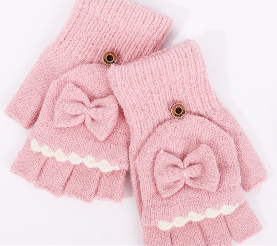 قفازات شتوي مخملية بدون أصابع محبوكة بفيونكة قابلة للطي