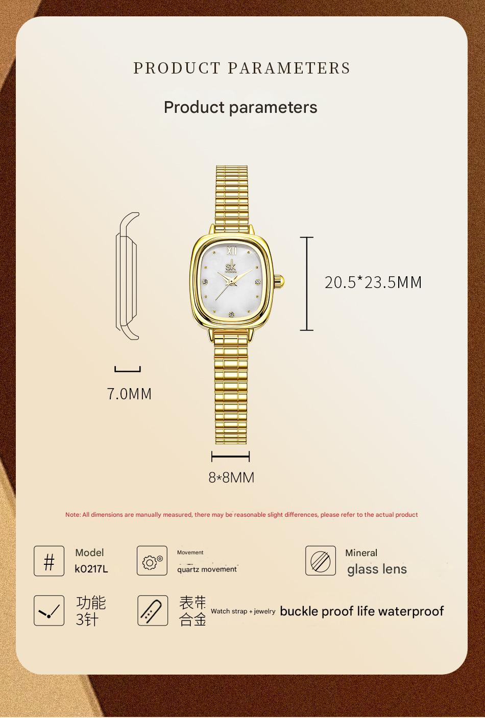 ساعة كوارتز مقاومة للماء بسوار فولاذي مربع صغير للنساء