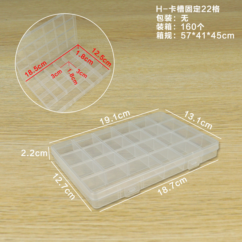 صندوق تخزين من البلاستيك الشفاف الثابت المكون من 22 شبكة