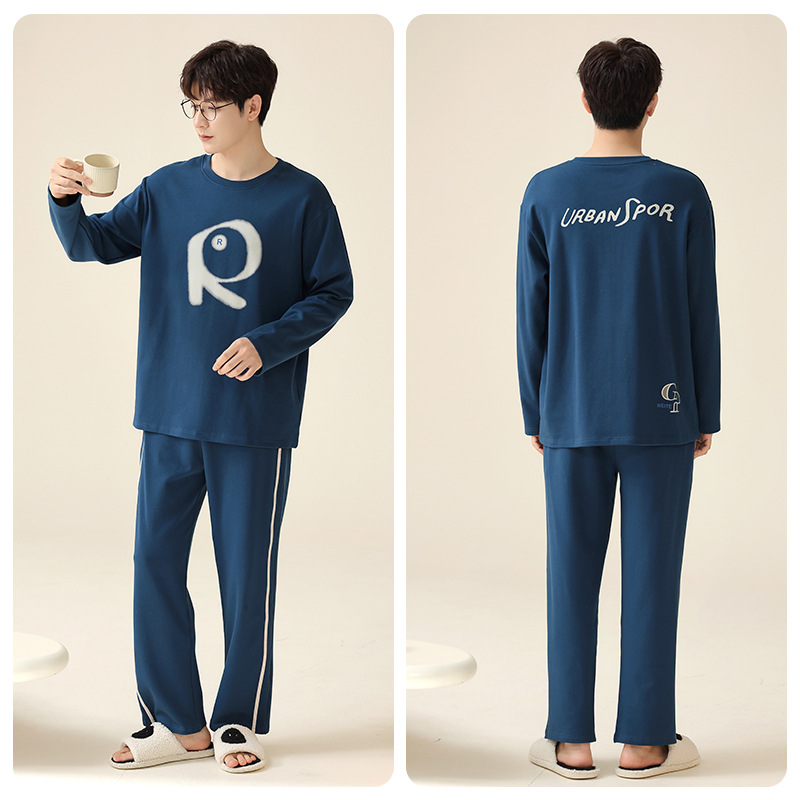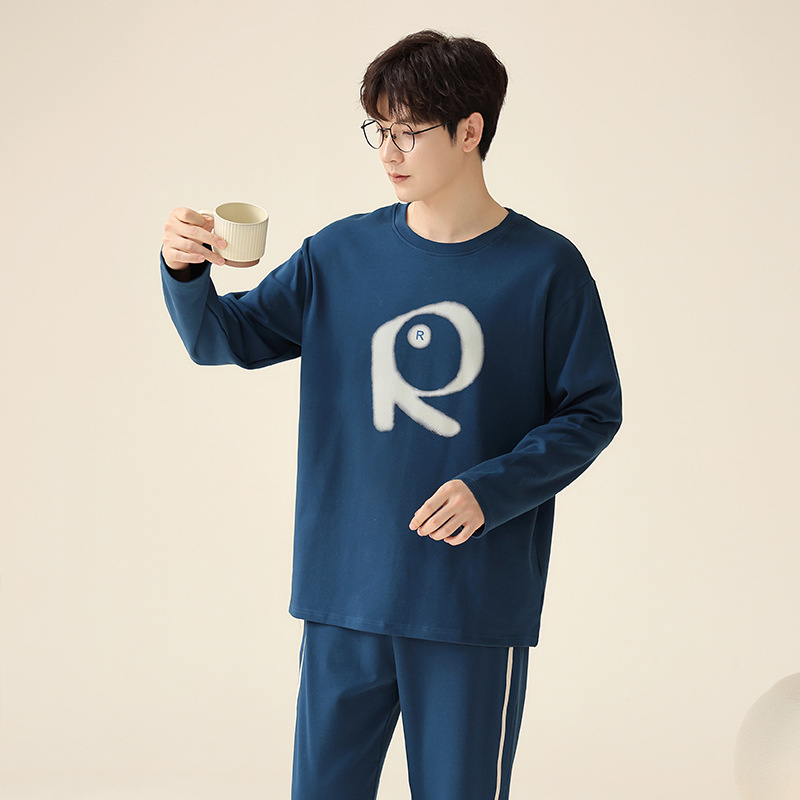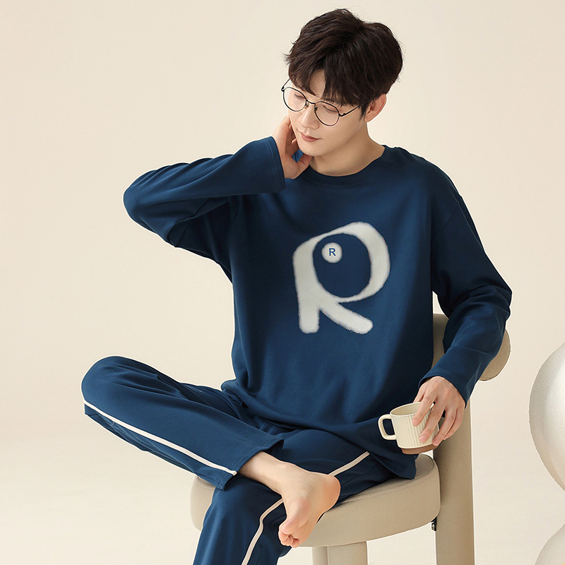 بيجامات رجالية ربيع وخريف من القطن الخالص بأكمام طويلة