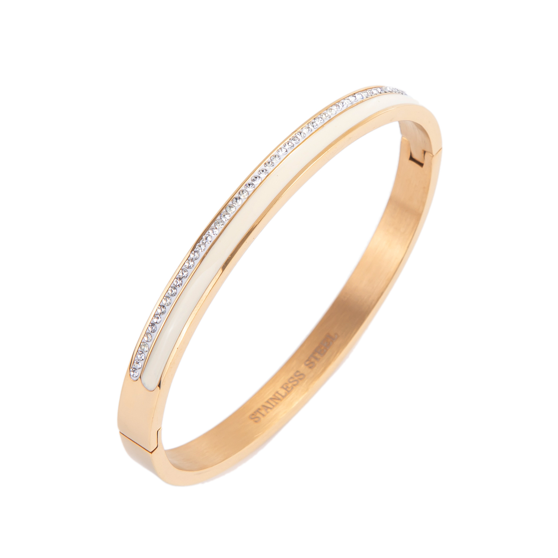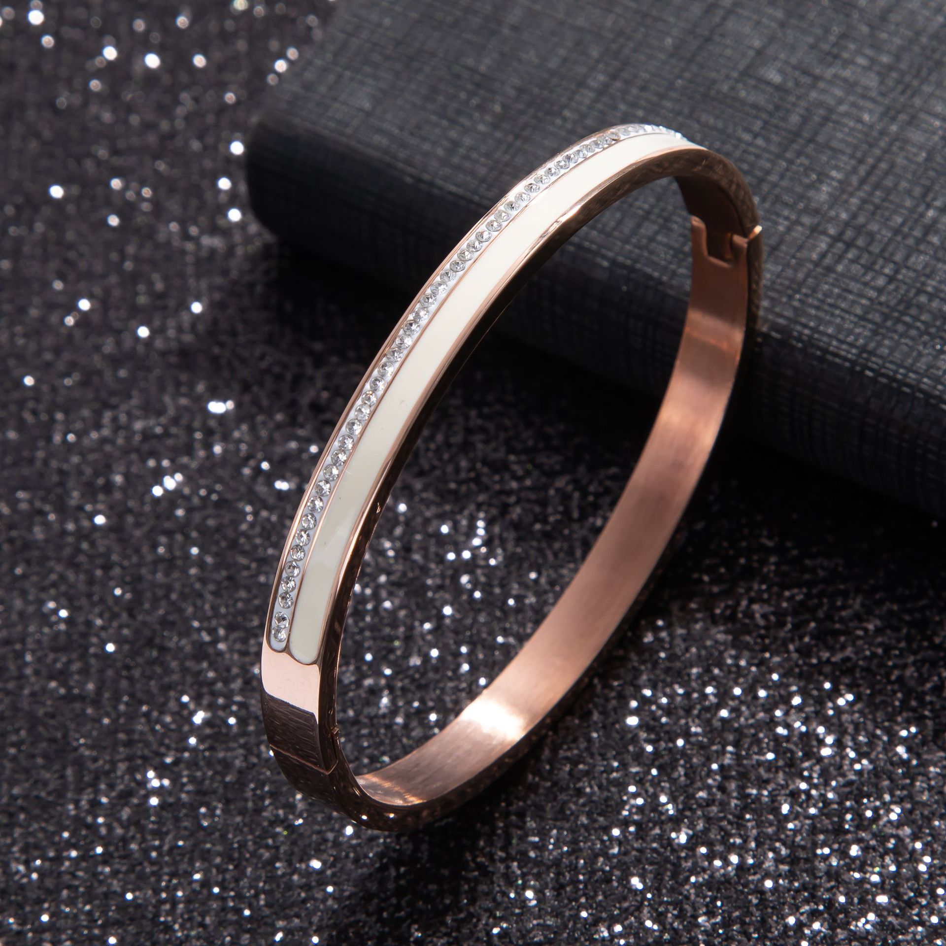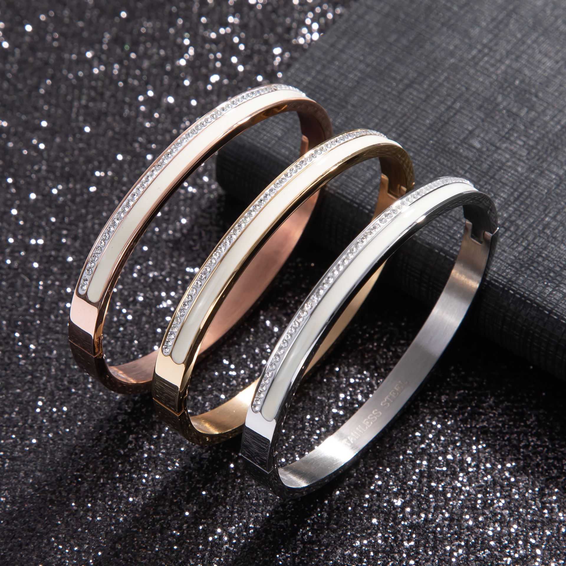 سوار من الفولاذ التيتانيوم مزدوج مرصع بالألماس للنساء