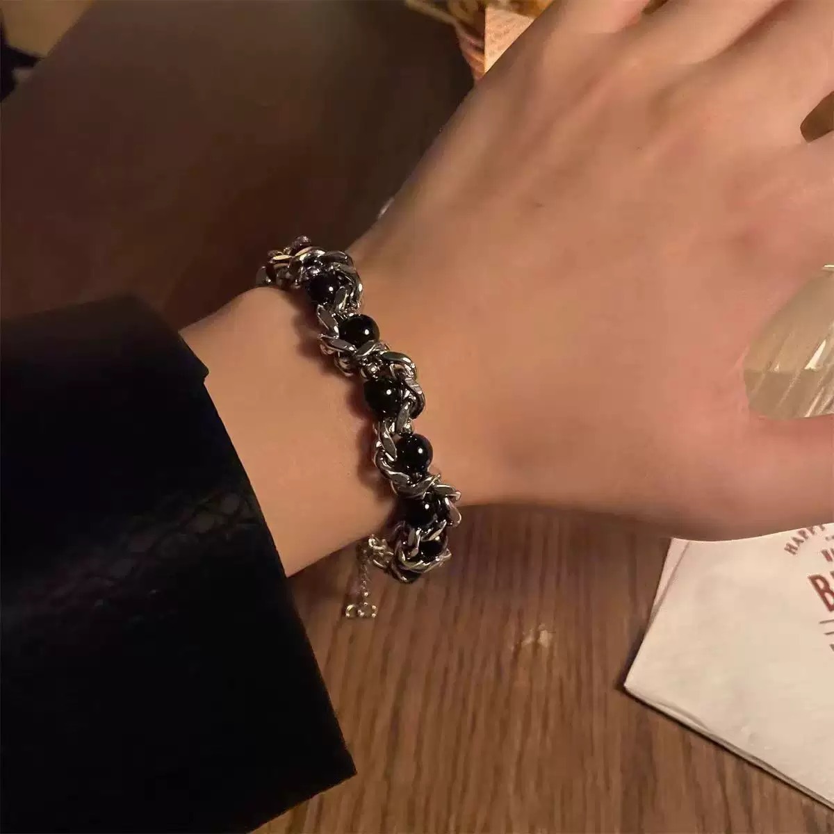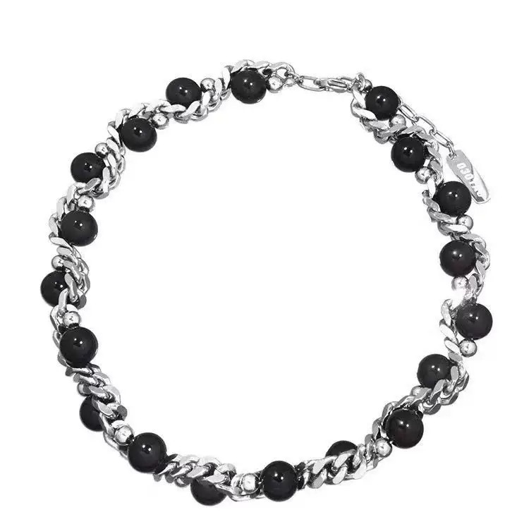 قلادة وسوار رجالي ملفوفة باللؤلؤ من الفولاذ التيتانيوم