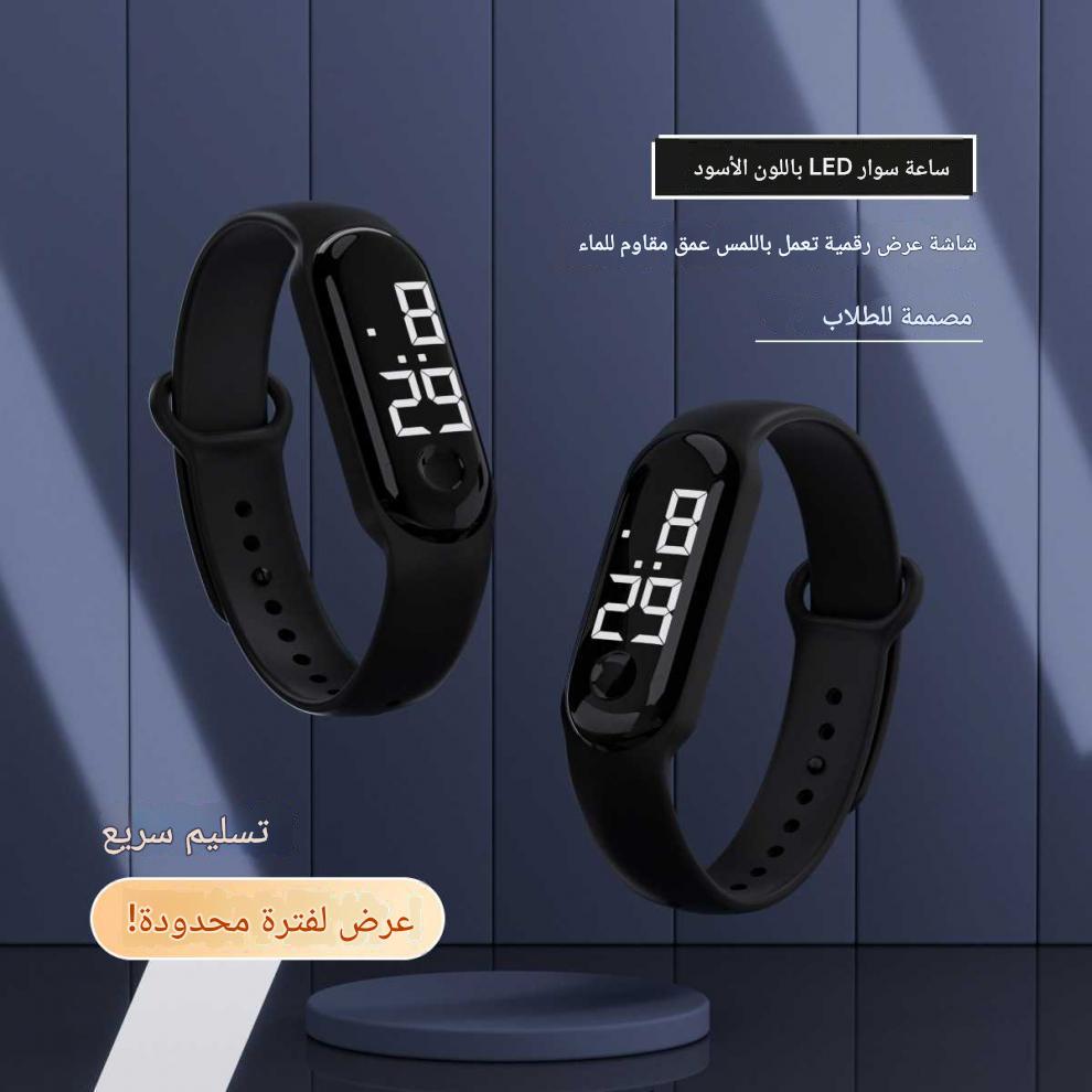 ساعة سوار LED سوداء للطلاب محدودة الوقت رياضية بسيطة