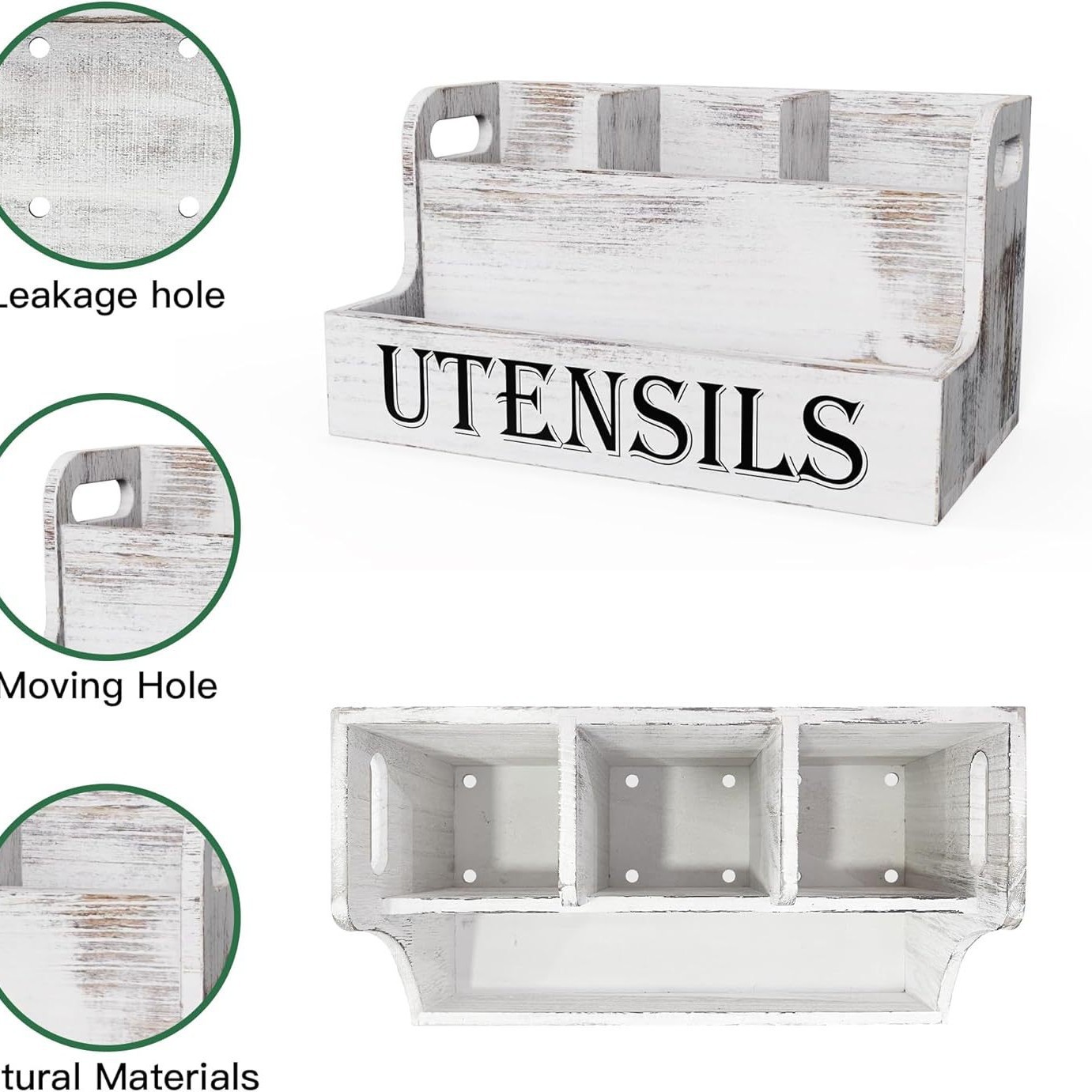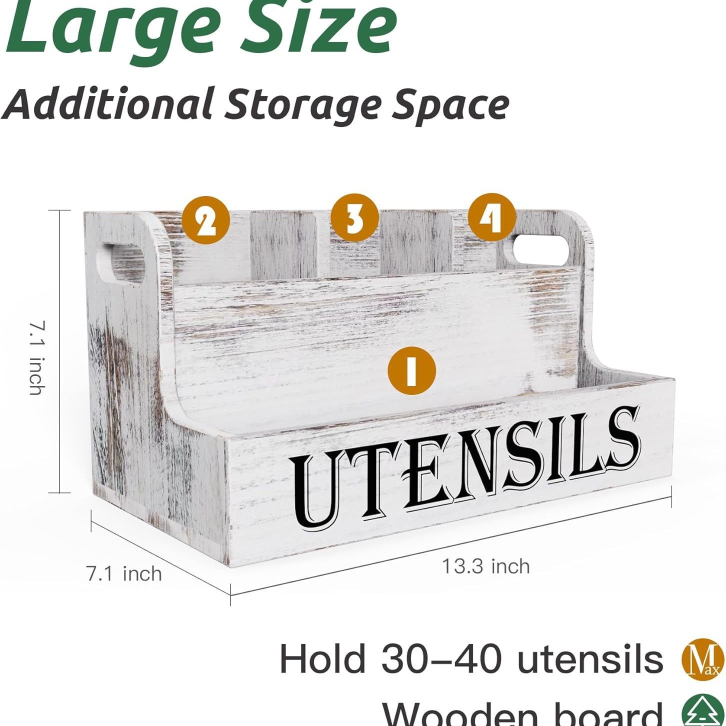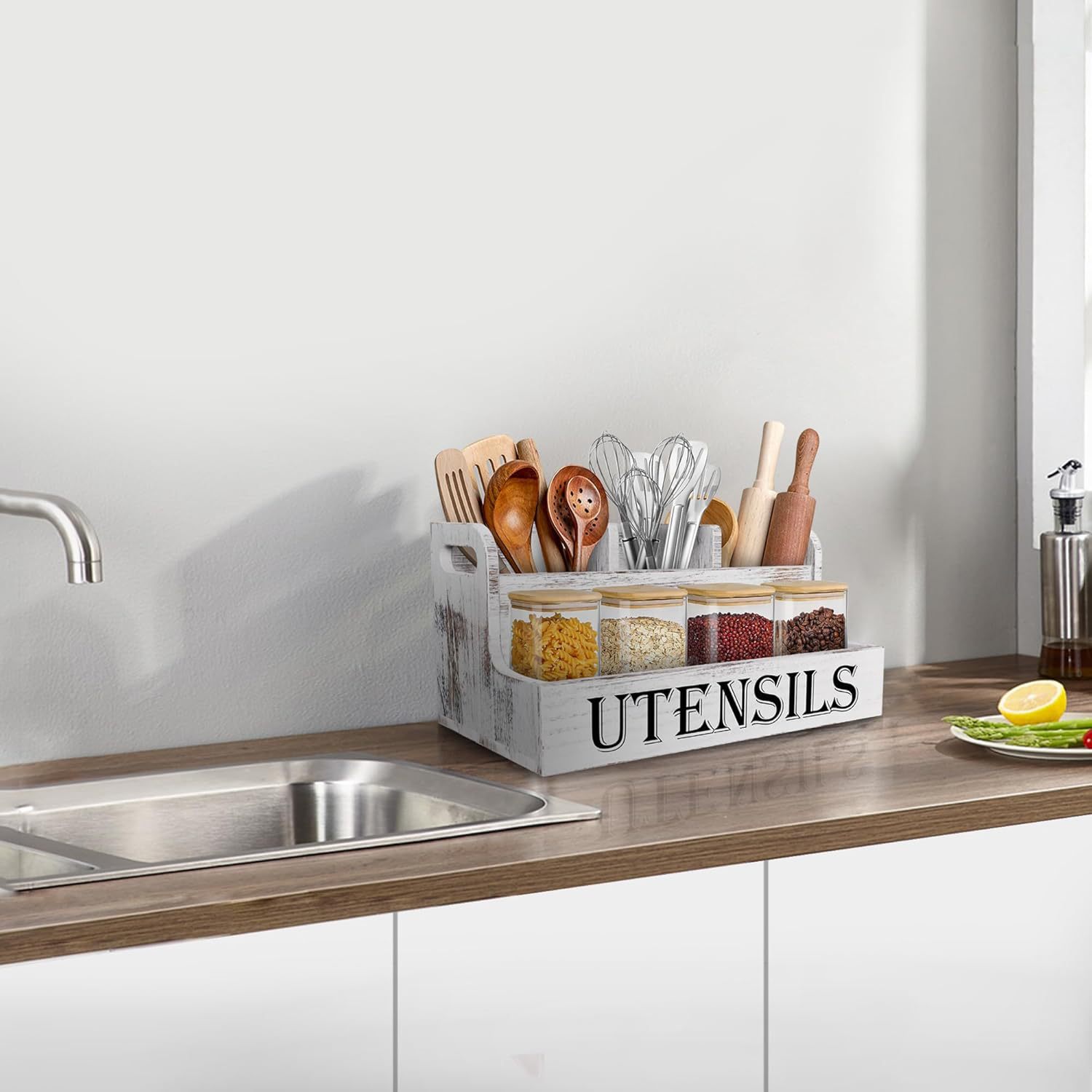 صندوق تخزين أدوات المائدة الخشبي لتخزين أدوات الطهي والتوابل