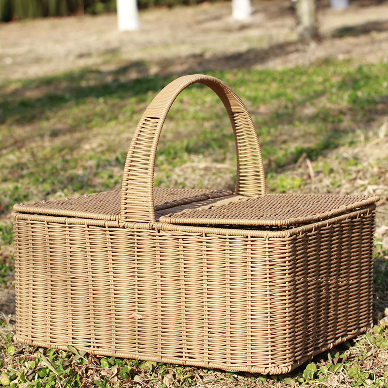 سلة نزهة خارجية محمولة من الخيزران مع غطاء