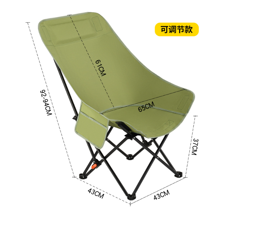 كرسي تخييم قابل للطي و للإمالة بمسند ظهر مرتفع مع مسند للقدمين بثلاث سرعات
