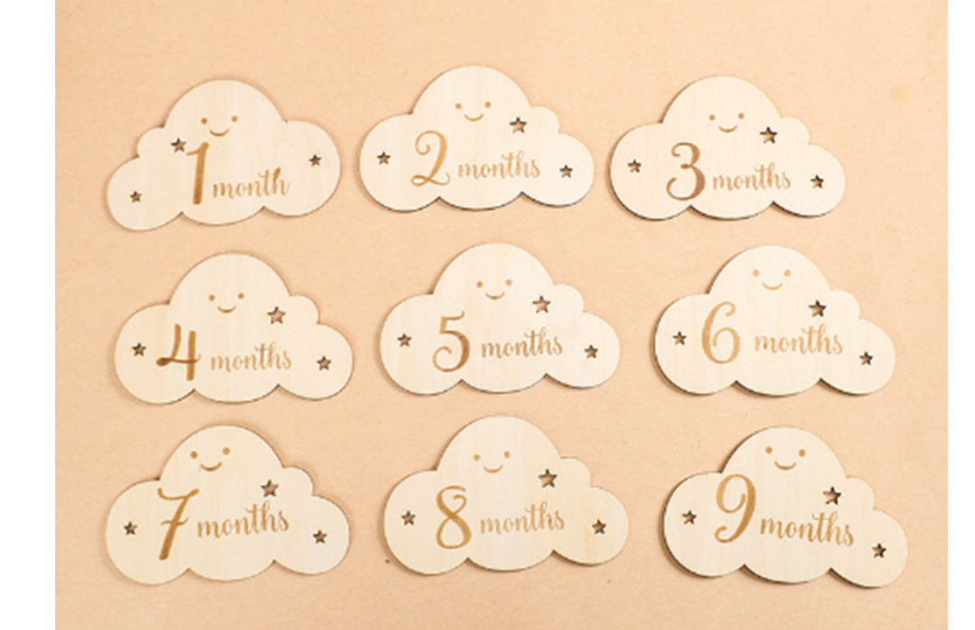 سحابة خشبية للأطفال على الوجهين تقويم نمو الطفل سجل شهر الميلاد