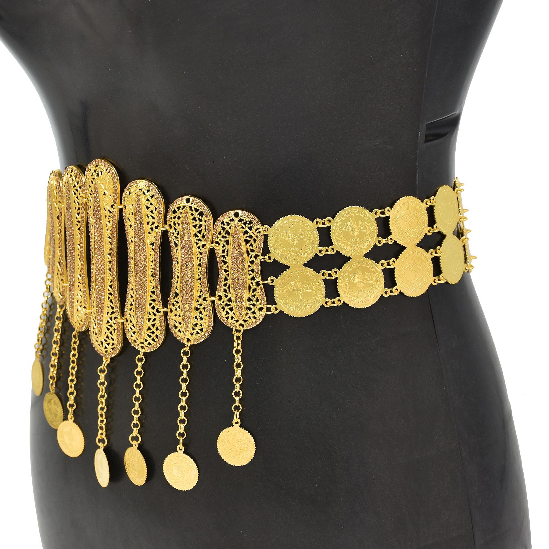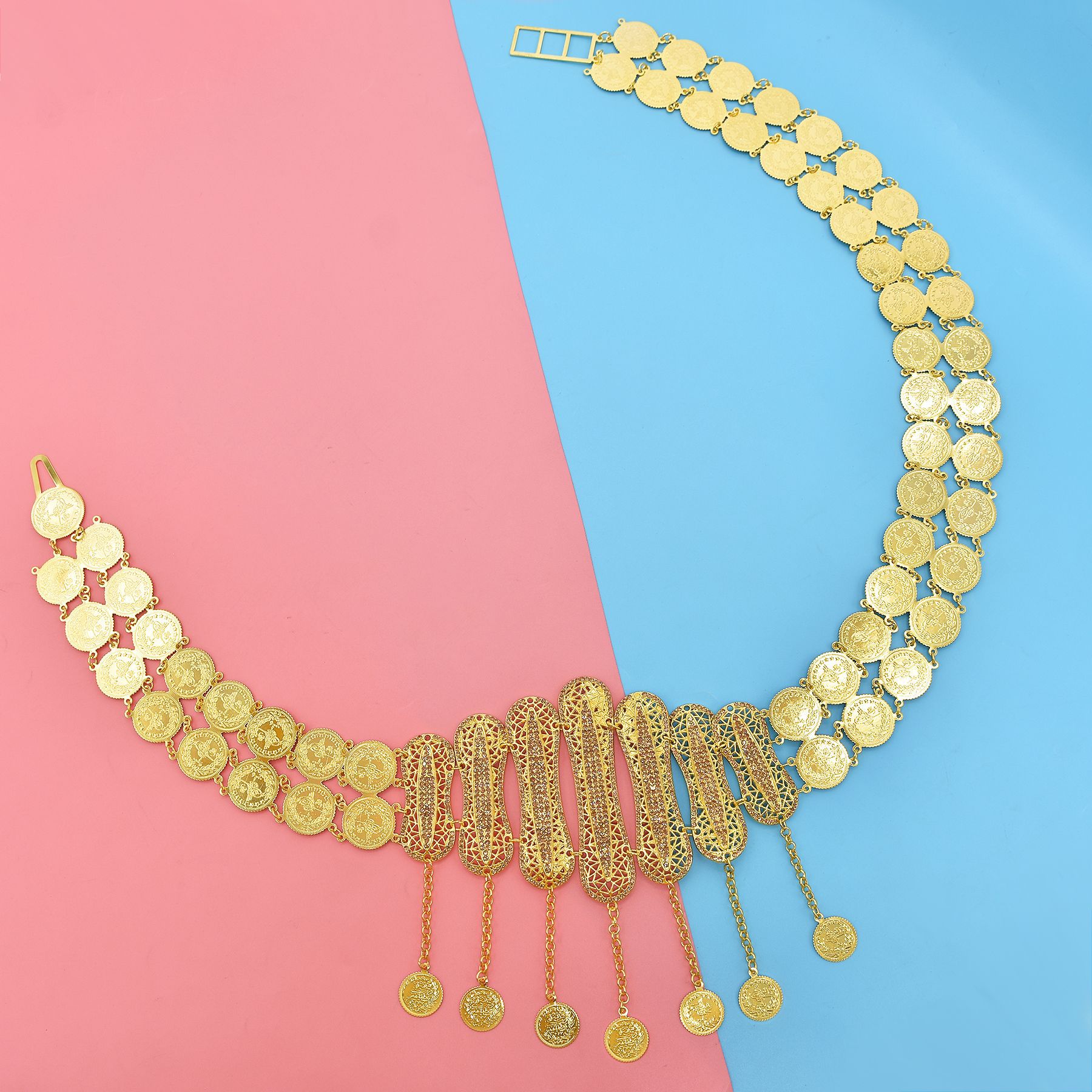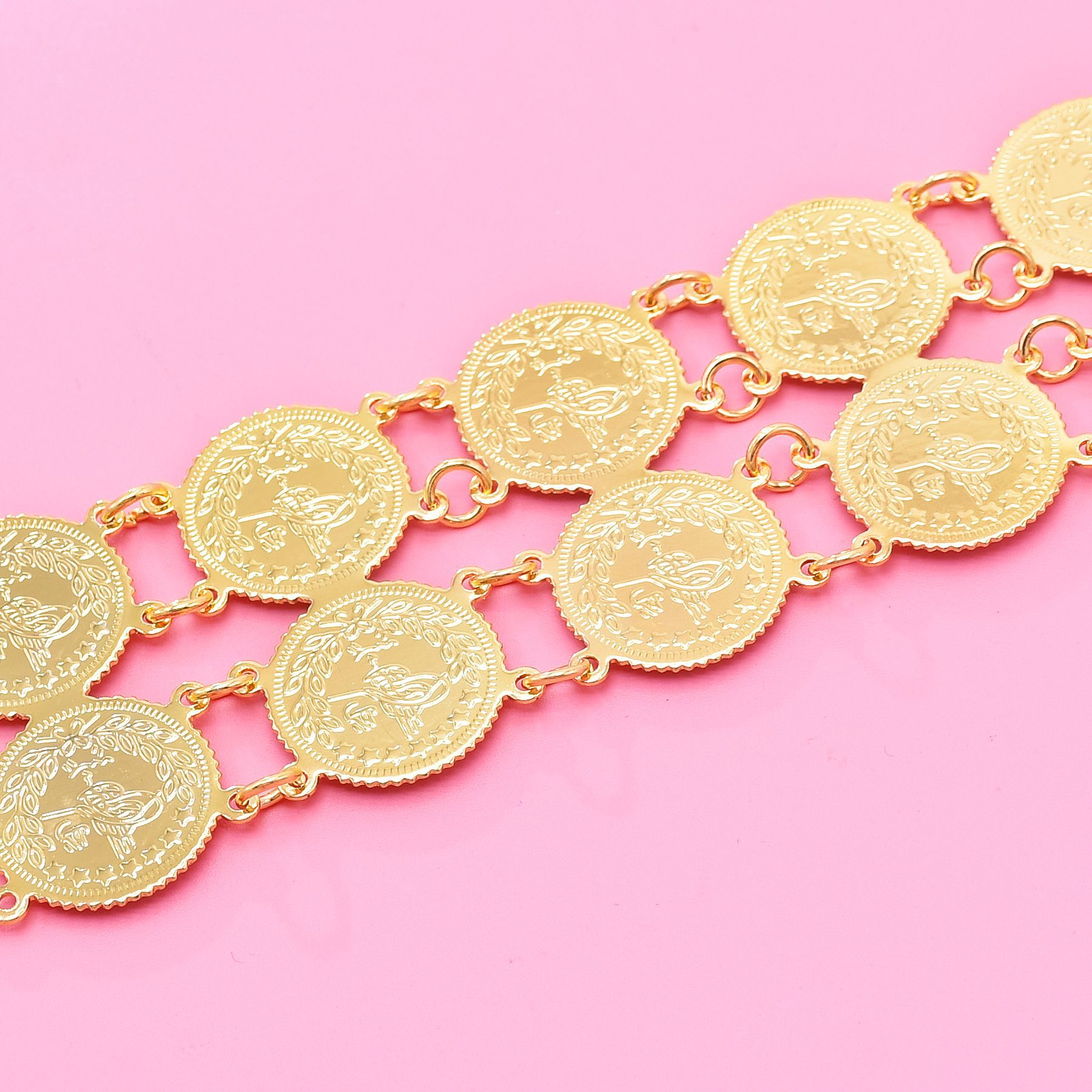 زينة خصر سلسلة خصر ذهبية جديدة شكل عملةمجوفة