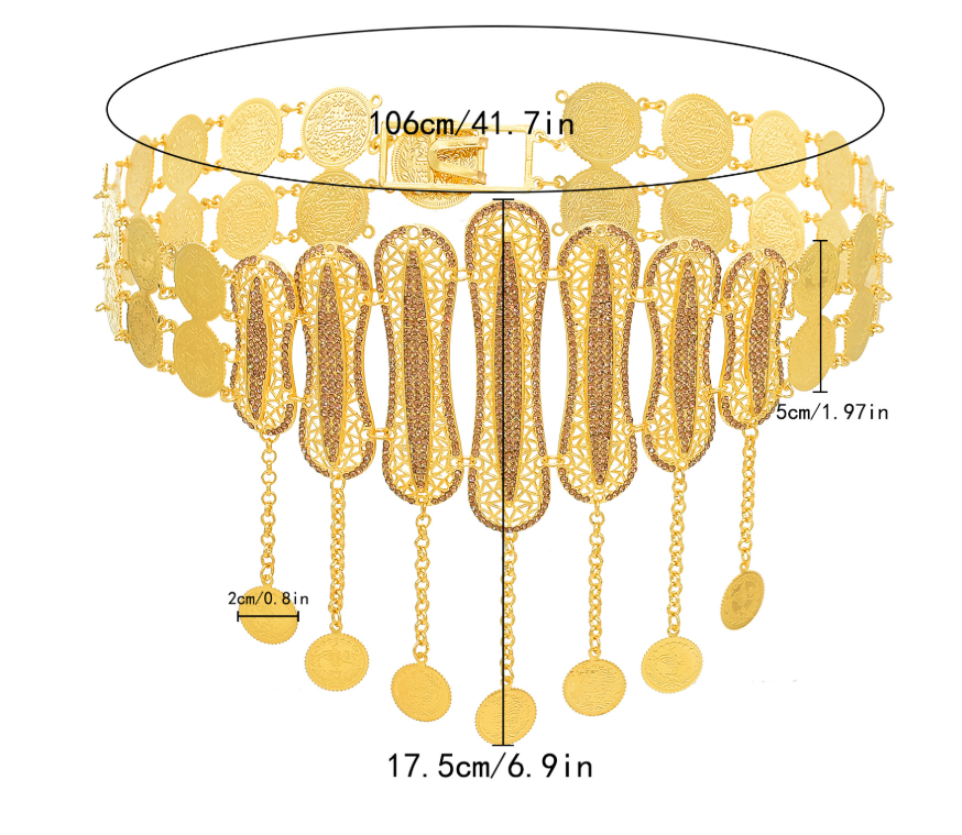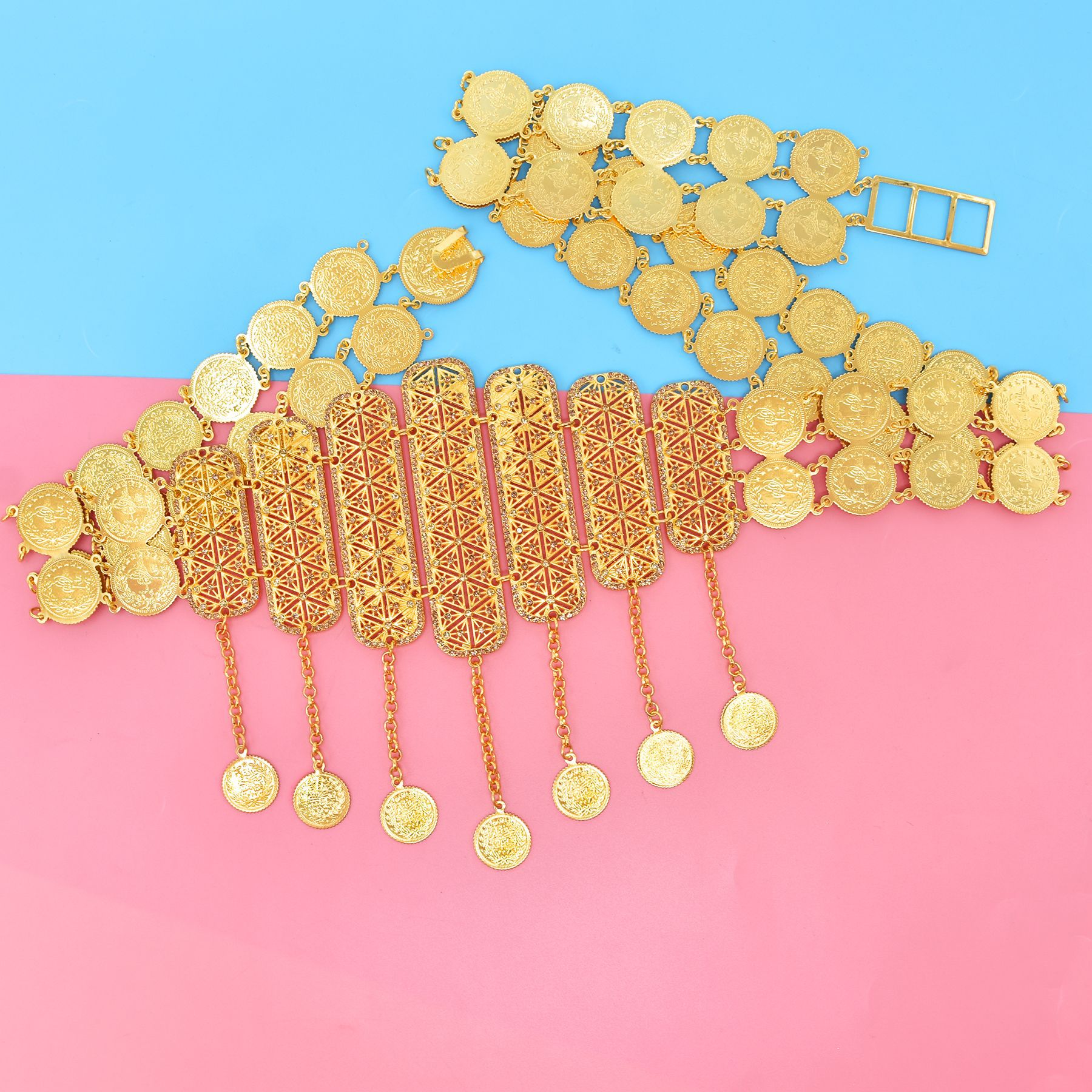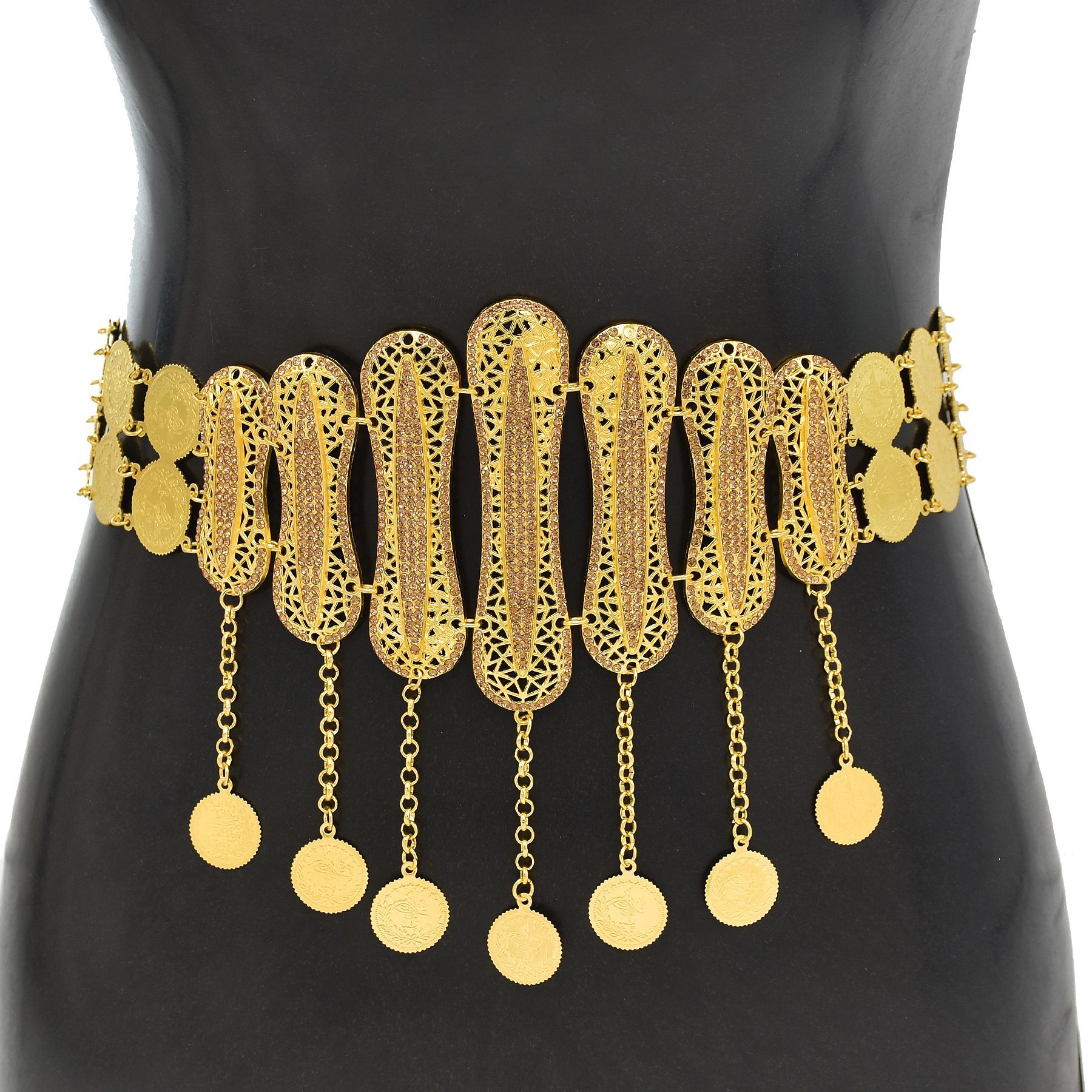 زينة خصر سلسلة خصر ذهبية جديدة شكل عملةمجوفة