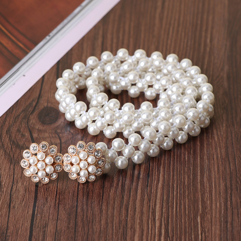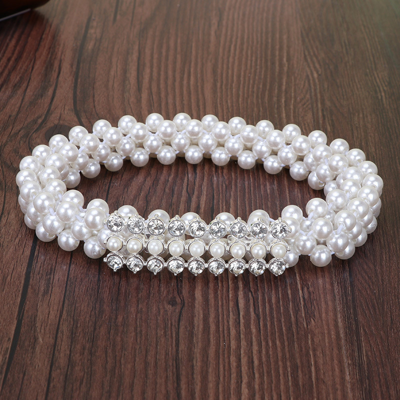 حزام الخصر اللؤلؤ ا لنسائي لتتناسب مع الفستان مرنة ناعمة