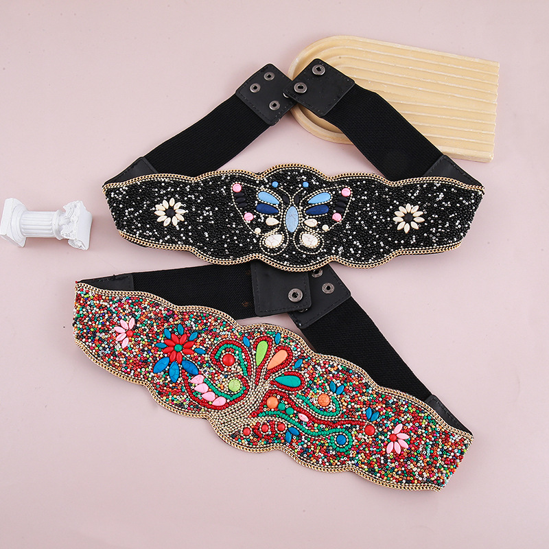 حزام عريض مصنوع يدويًا وإكسسوارات زينة خصر جديدة