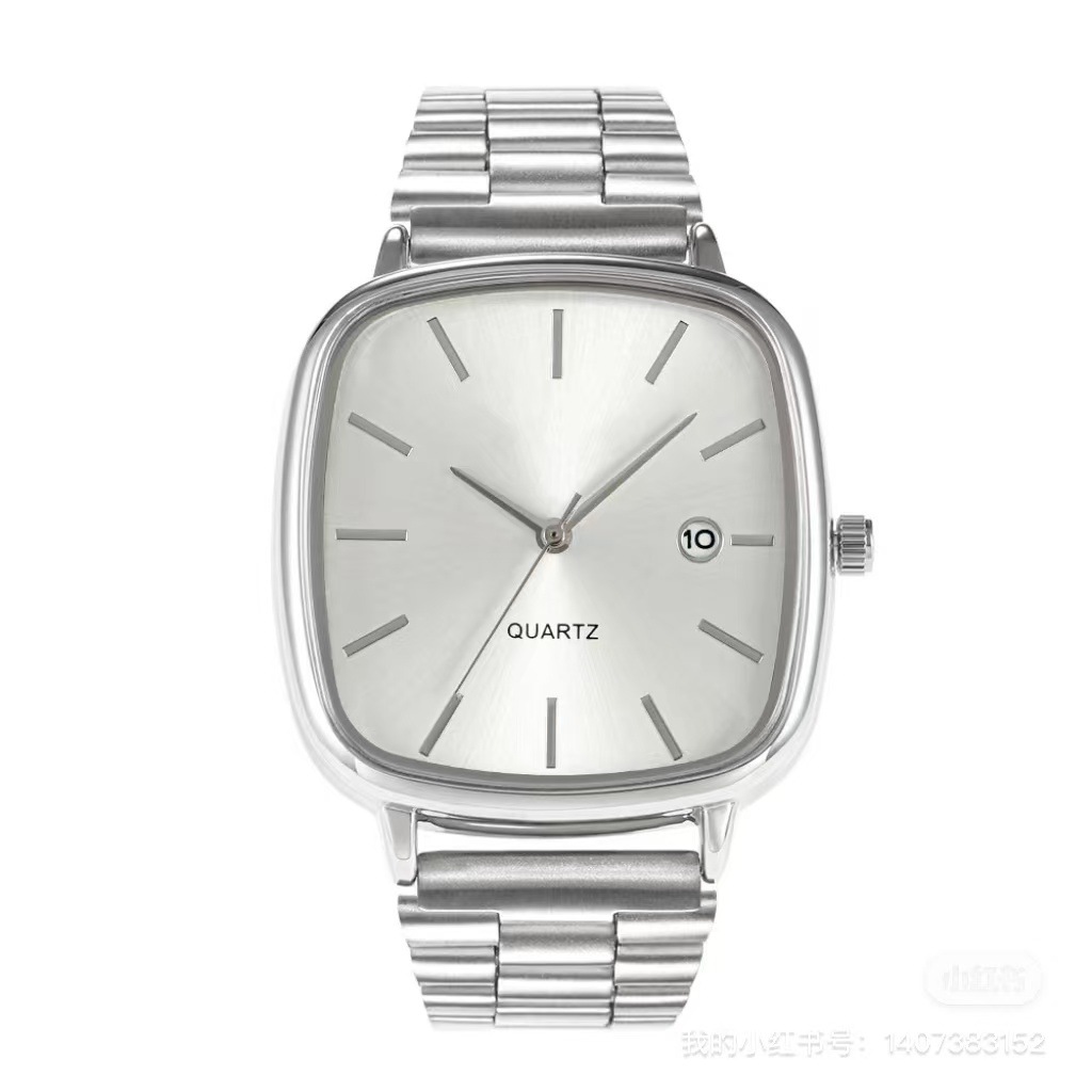 ساعة فضية فولاذية رجاليةصغيرة مربعة