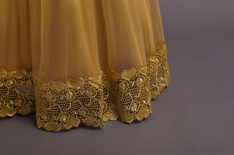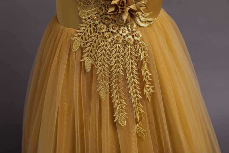 فستان سهرة بناتي بحاشية من التل النقوش وفوينكه بالخلف