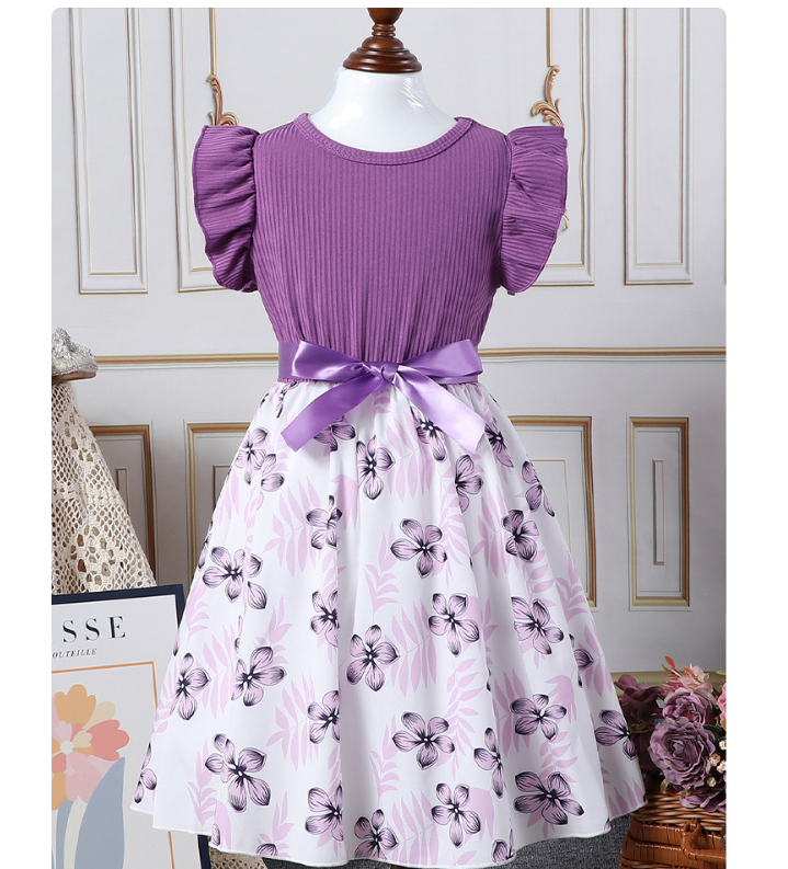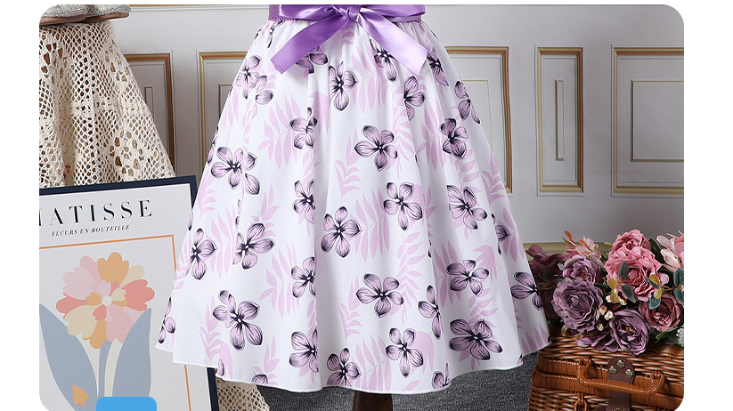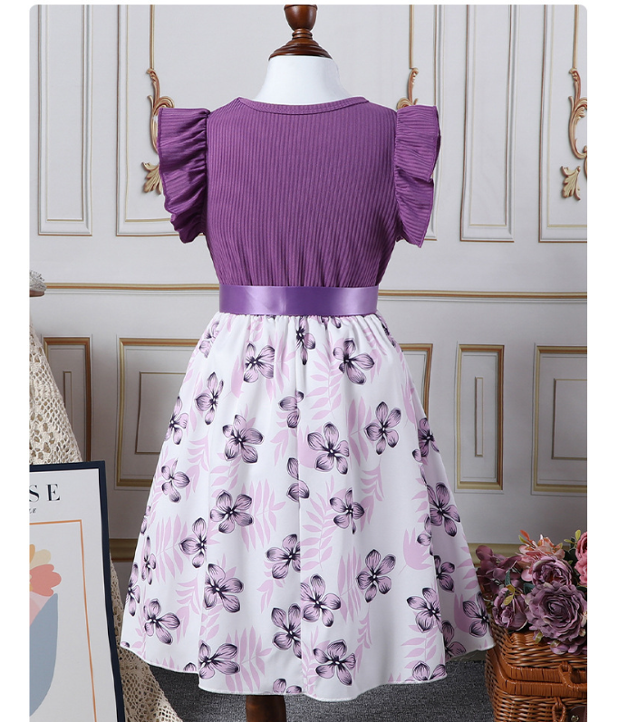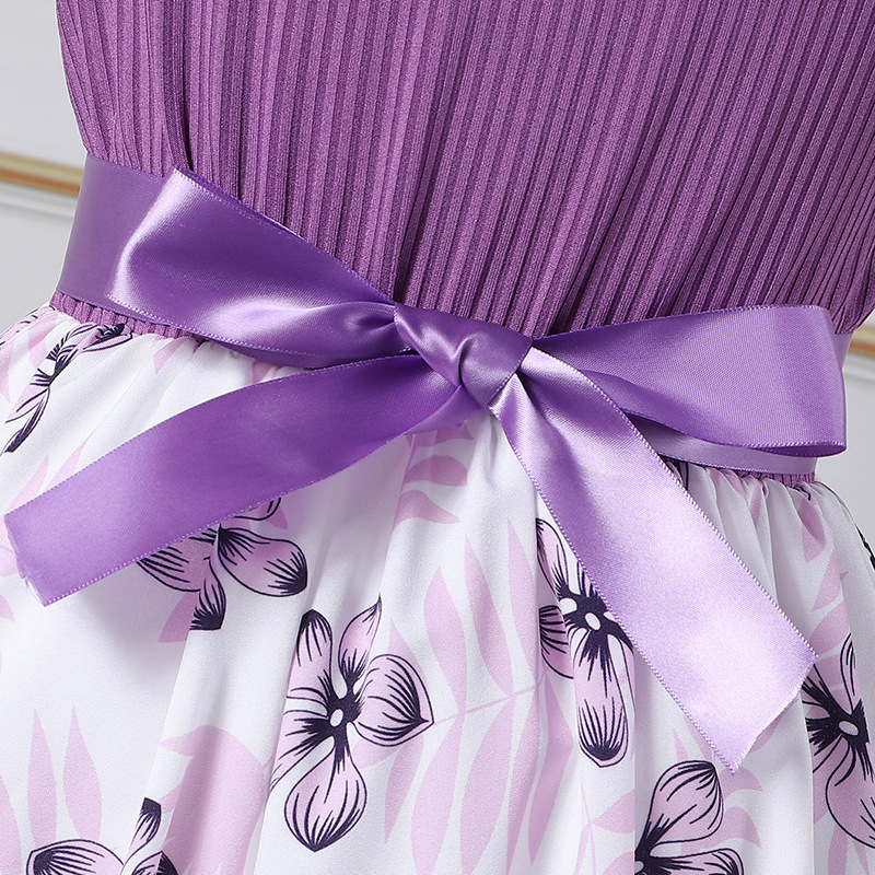 فستان لطيف بناتي مطبوع عليه زهور على شكل فيونكة