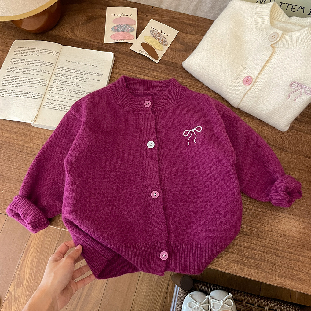 سترة أطفال أنيقة للفتيات محبوكة بلوزات صوفية باكمام طويلة