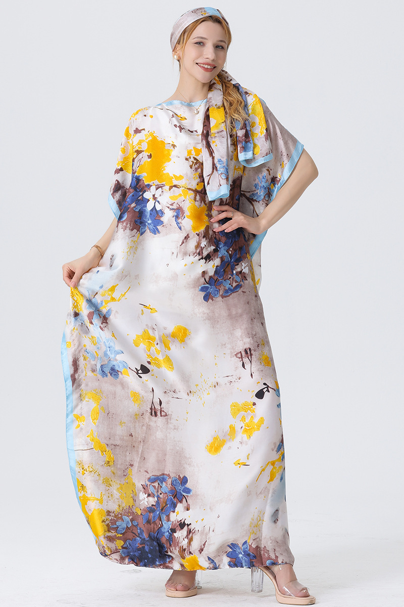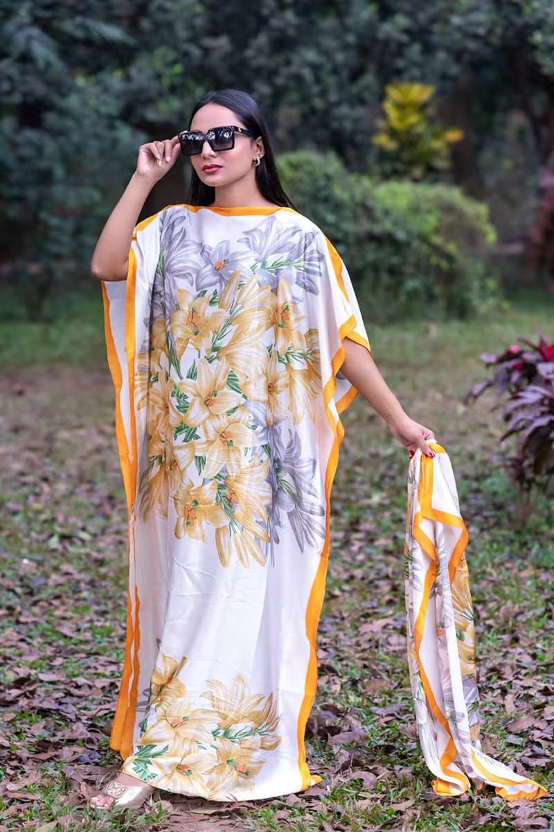 جلابيات نسائية بالوان عشوائية مموجه مميزه مع وشاح صغير